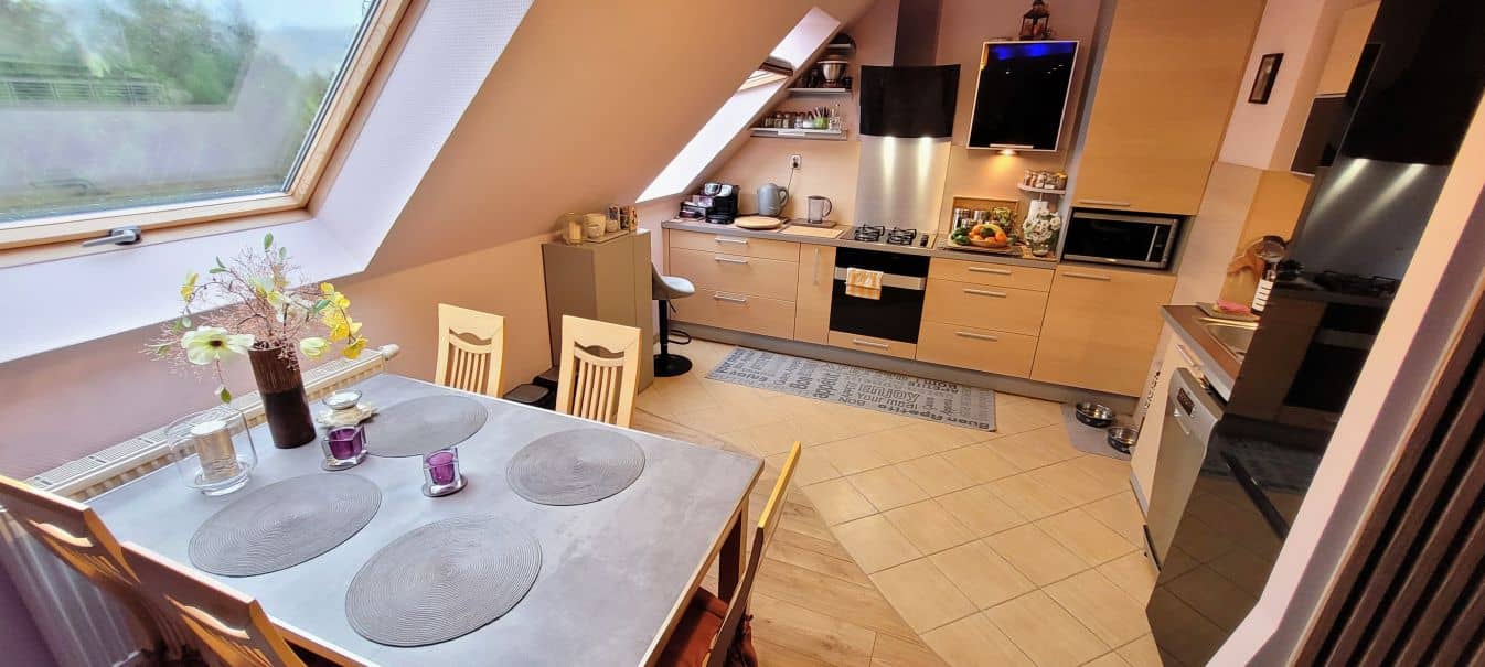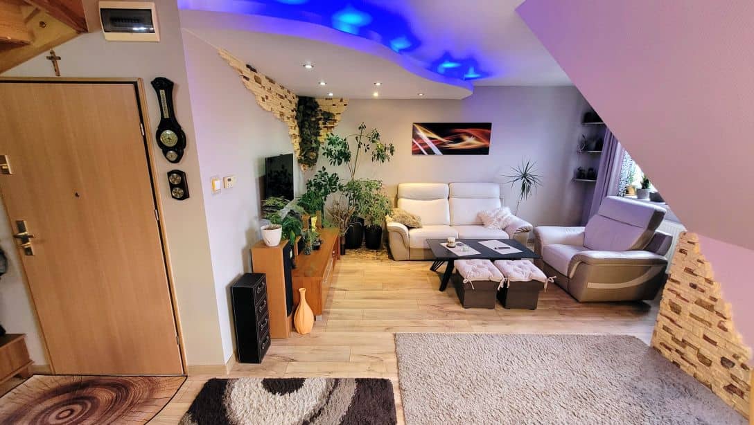 -2-poziomowe mieszkanie na 1 i ostatnim piętrze w zabudowie szeregowej z 2002 roku na Zabobrzu III