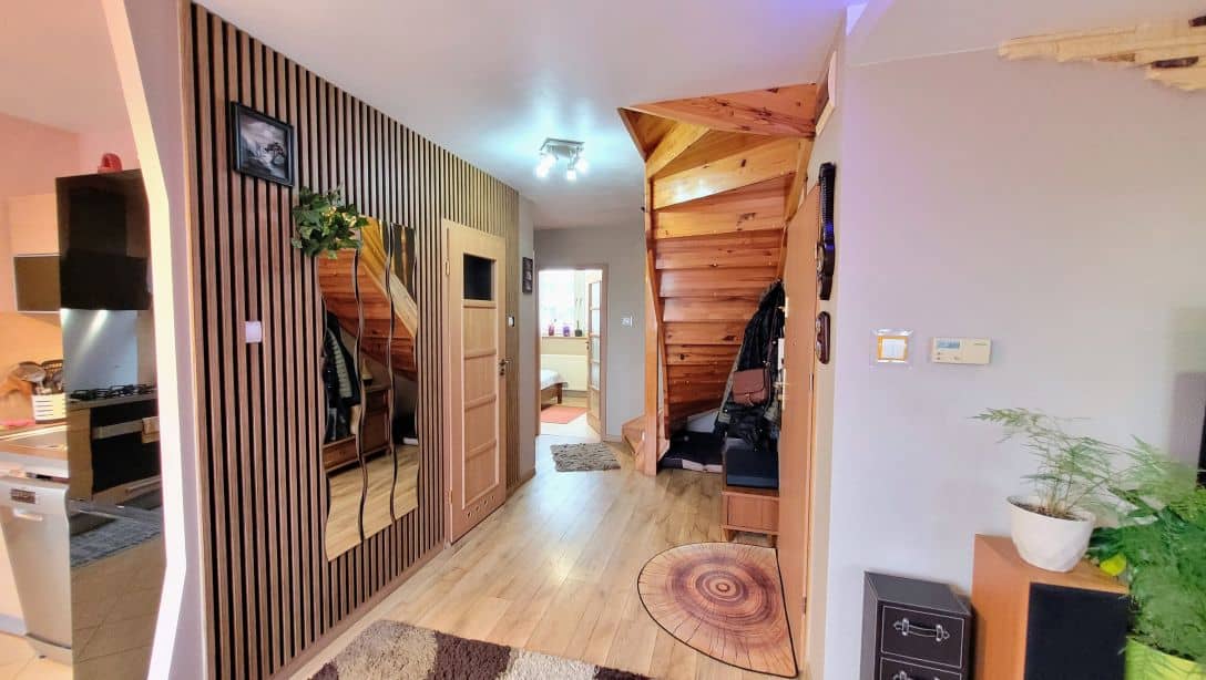 -w cenie pozostaje prawie całe umeblowanie prócz mebli w pokoju na górze i komody, co oznacza że prócz mebli pozostają również sprzęty AGD, w tym: kilkumiesięczna lodówka i zmywarka będące jeszcze na gwarancji oraz miedzy innymi pralka i suszarka widoczna na zdjęciach