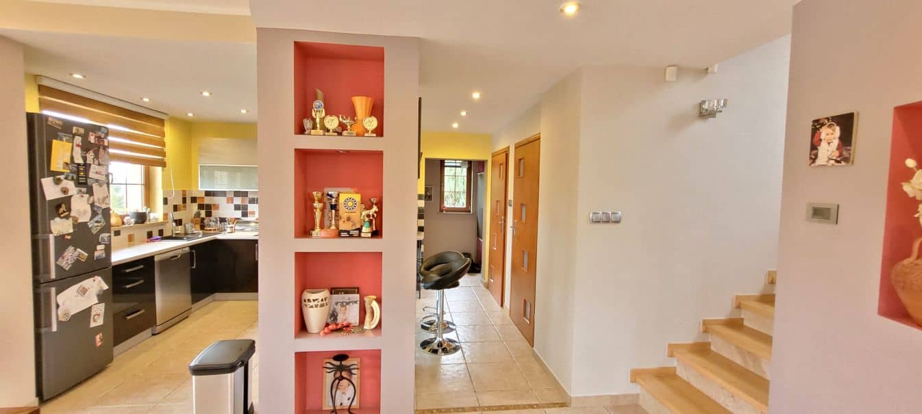 Na sprzedaż przestronny, wolnostojący dom o powierzchni użytkowej 168,5 m², położony na pięknie zagospodarowanej działce o powierzchni 1544 m². Budynek murowany z cegły, ocieplony, z dachem
