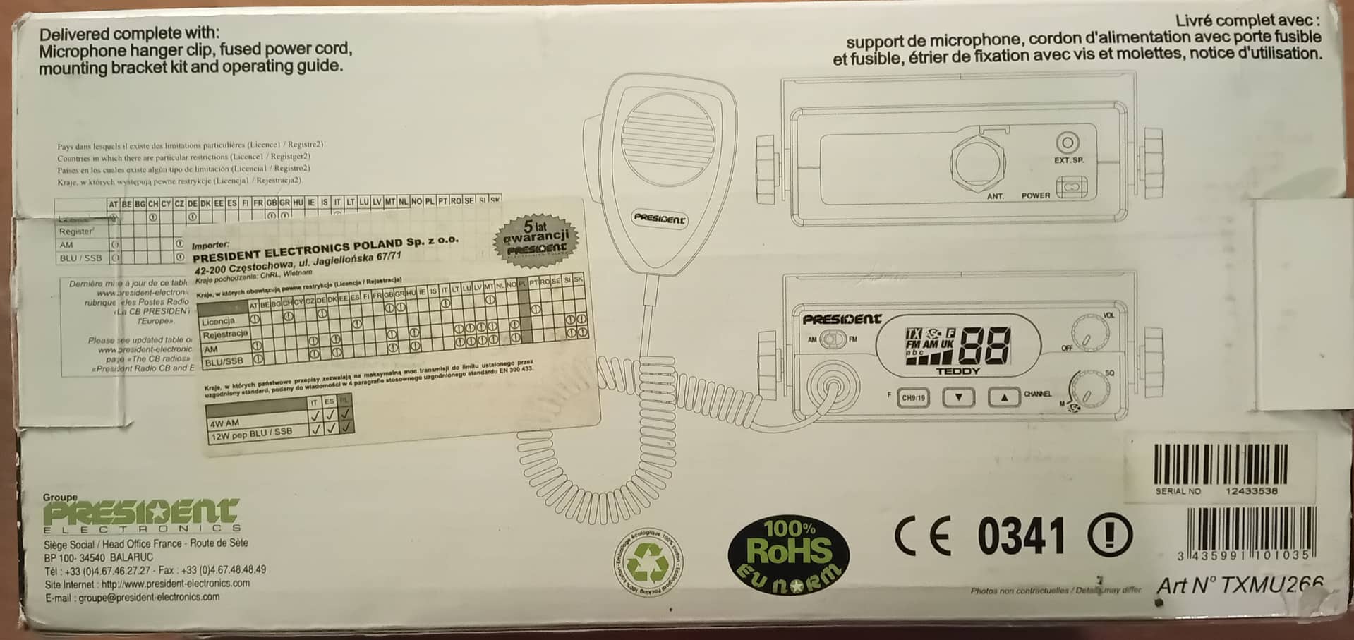 Sprzedam CB.Radio President Teddy z Anteną Sirio na magnes w zestawie sprzęt mało używany w 100% pr. Sprawny w zestawie pudełko papiery itp. Idealny na długie trasy do busa ciężarówki itp. Można pisać SMS w wolnej chwili oddzwonię, Cena. 220.zl .Odbiór. w Gryfów Śląski.