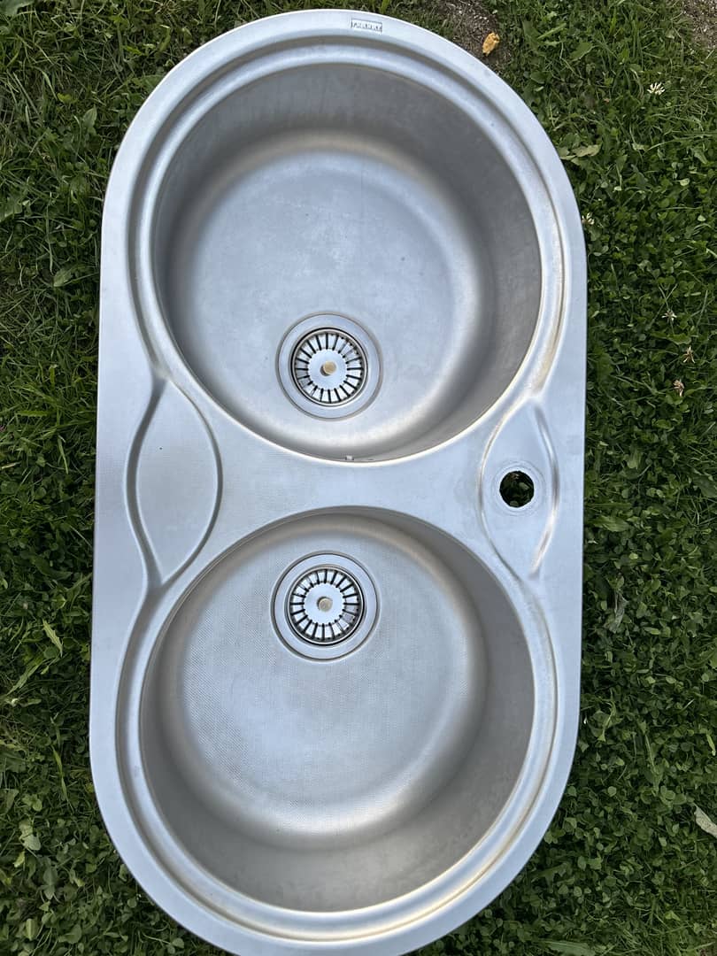 Sprzedam dwukomorowy zlewozmywak stalowy franke z przelewem , wymiary :długość 85cm szerokość 44cm. Cena 100zł