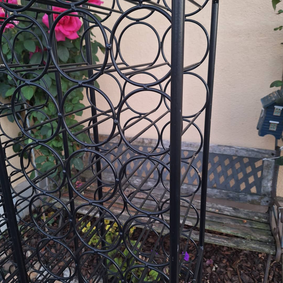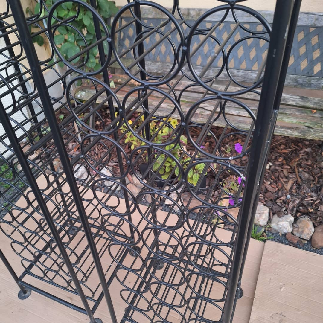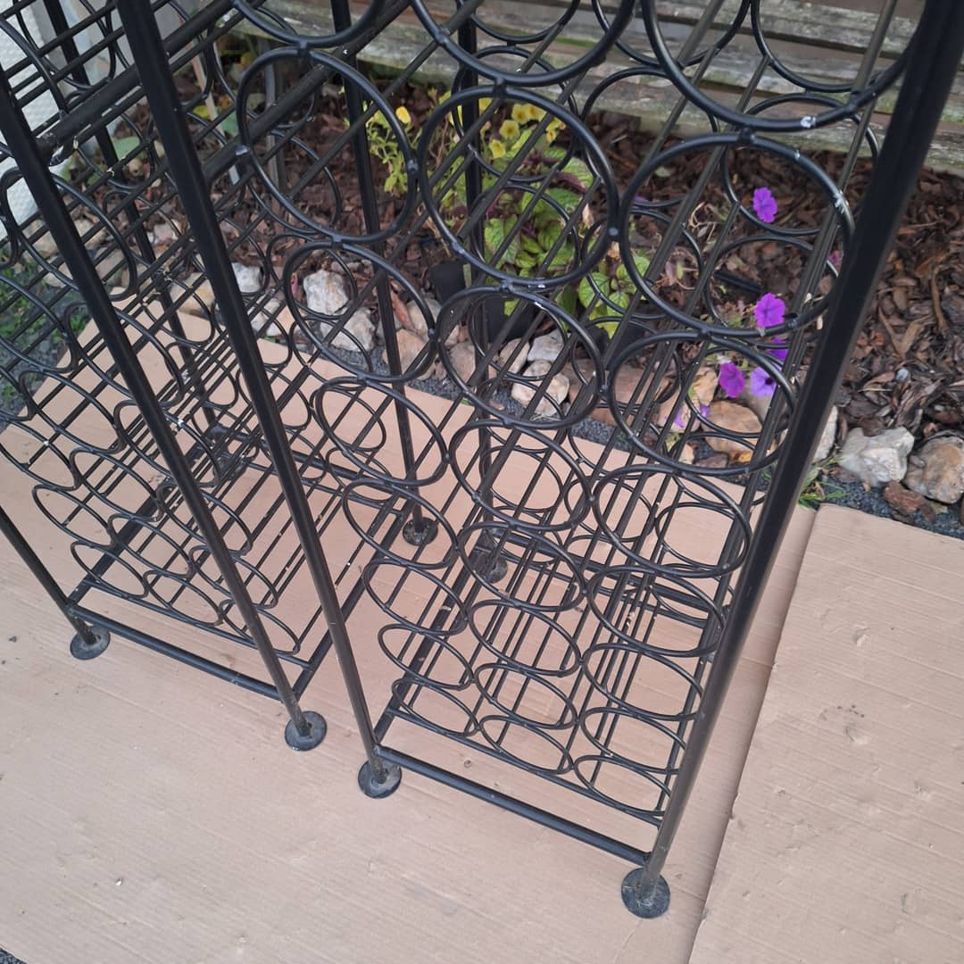 Stojaki metalowe na butelki, jeden pomieści 39 sztuk. Wymiary 32/33/164 cm, cena za jeden 150 zł. Możliwy transport lub odbiór osobisty.