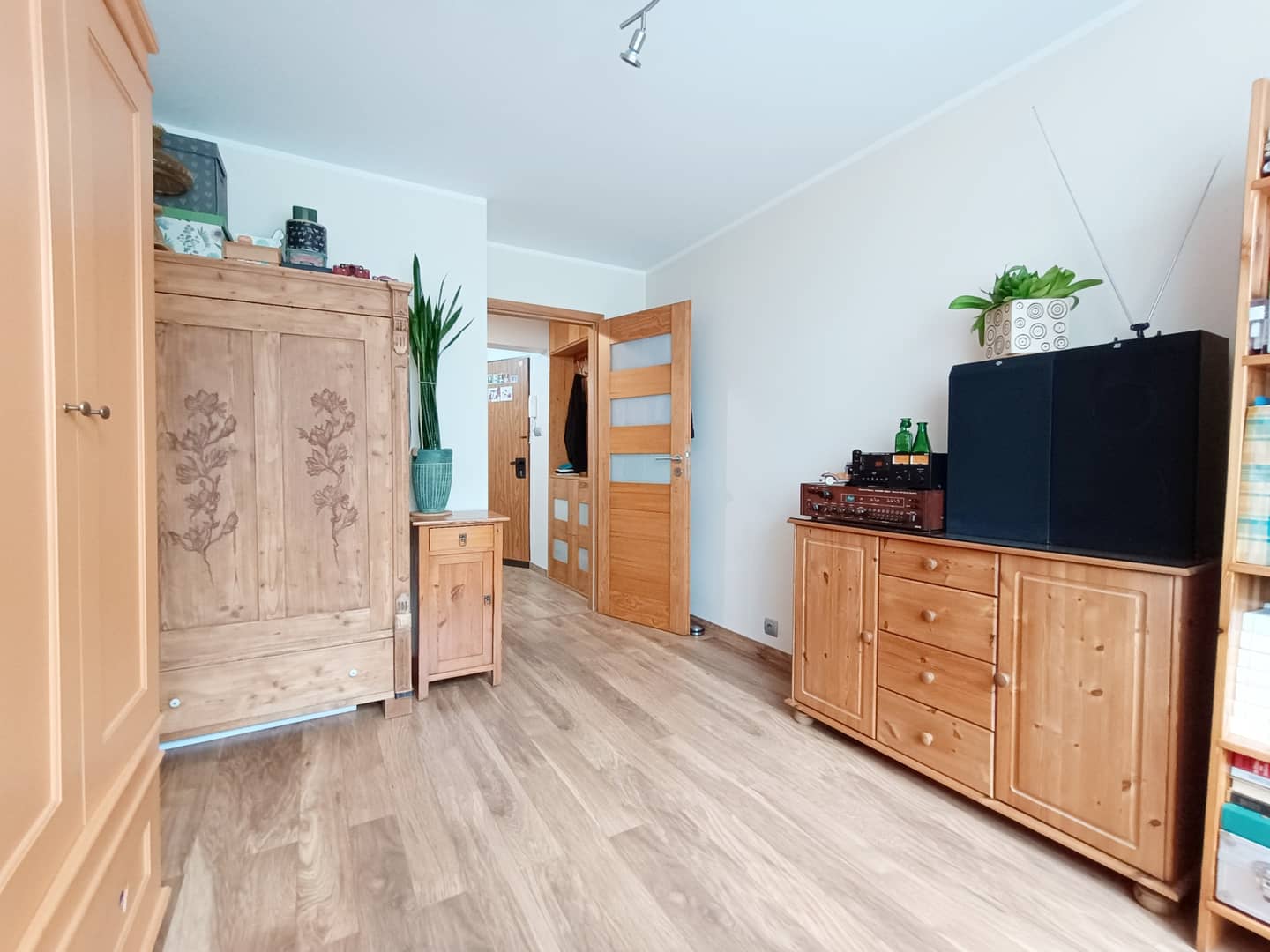 Mieszkanie dwustronne, jasne, dobrze doświetlone. Dwa pokoje (w tym salon z balkonem) wychodzące na stronę południową.