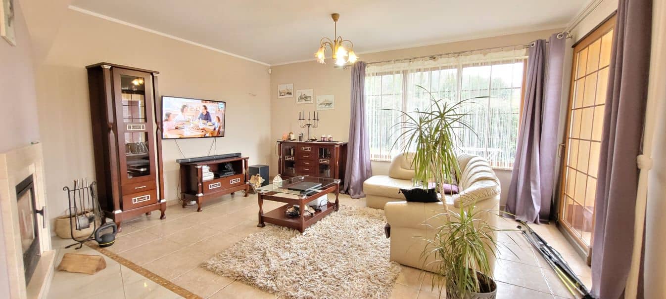Ogrzewanie na dole podłogowe, a na górze głównie koloryferowe, tylko w łazience jest mieszane, pochodzi z bardzo dobrego kominka z płaszczem wodnym o mocy 12kW oraz z pieca gazowego 2-funkcyjnego firmy Viessmann, dodatkowo ze zbiornikiem na ciepłą wodę użytkową. Kominkiem można sterować pilotem i przełączać go na np. priorytetowe grzanie wody lub wyłączenie centralnego ogrzewania i grzania tylko wody. Piec gazowy obecnie czerpie gaz ze zbiornika z gazem płynnym ale na granicy działki jest gaz ziemny, więc dość małym kosztem można go doprowadzić do budynku. Skrzynka z gazem jest zaledwie metr od instalacji gazu płynnego. Na granicy działki jest też światłowód.
