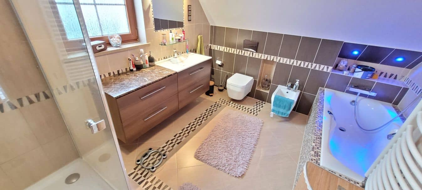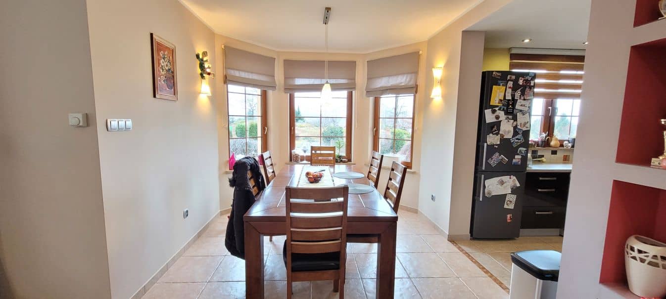 Cały dom jest w bardzo dobrym stanie technicznym i nie wymaga dodatkowych inwestycji. Kuchnia ze sprzętami AGD ( płyta elektryczna ceramiczna, piekarnik, mikrofalówka, zmywarka, lodówka ) oraz stałe zabudowy ( szafy ) pozostają w cenie nieruchomości. Reszta umeblowania do uzgodnienia.