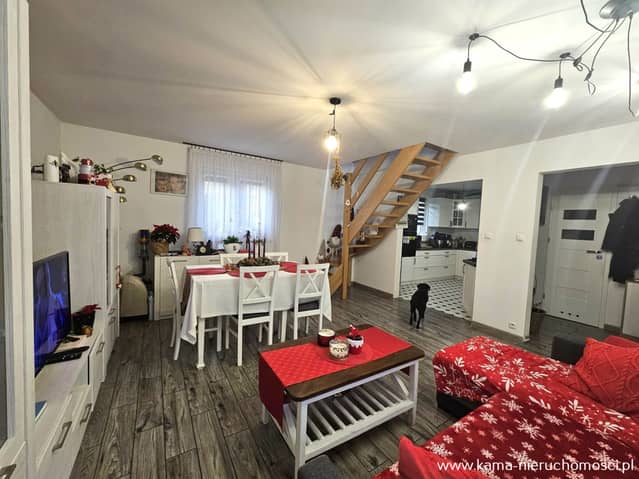 Przestronny z całym umeblowaniem i sprzętem AGD dom o powierzchni 100 m² został zaprojektowany z myślą o wygodzie mieszkańców i funkcjonalności.