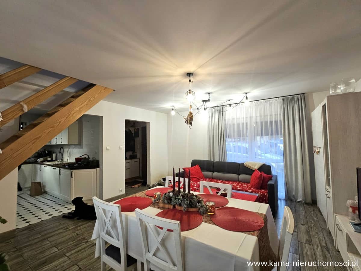 - jasny salon z jadalnią i wyjściem na ogród, idealny na relaks i spotkania