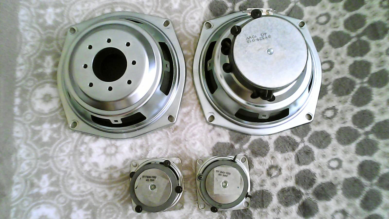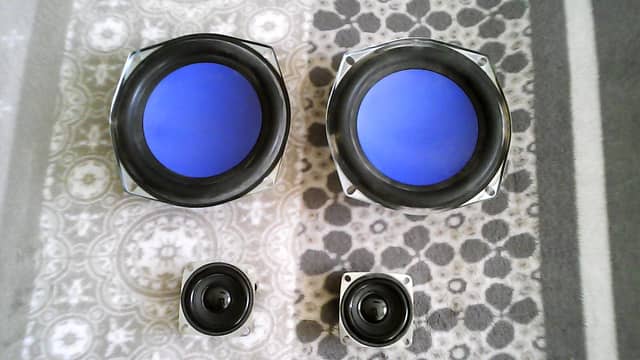 Sprzedam komplet głośników za 25 zł. W skład kompletu wchodzą głośniki wysokotonowe o mocy 3 W 4 Ohm, głośnik niskotonowy o mocy 10 W 4 Ohm, kosz z zawieszeniem i membraną oraz komplet śrubek montażowych. Sprawne technicznie. Noszą niewielkie oznaki użytkowania.