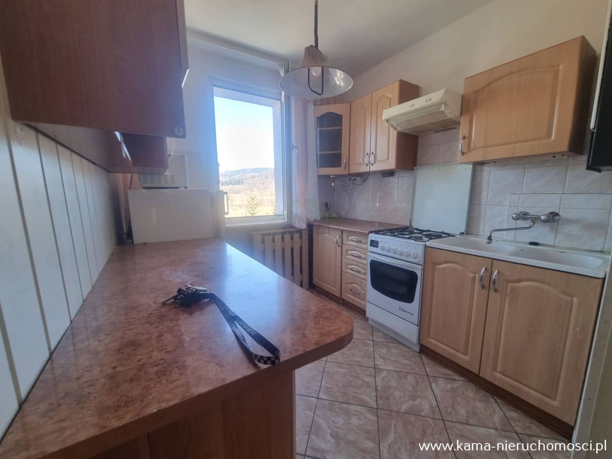 Kama Nieruchomości prezentuje Państwu bardzo słoneczne dwupokojowe mieszkanie z przepięknym widokiem na góry usytuowane na czwartym piętrze czteropiętrowego bloku położonego w spokojnym miejscu Kowar.