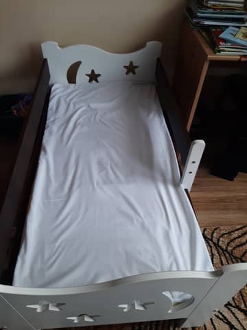 Łóżko, stelaż i materac idealne dla dziewczynki.