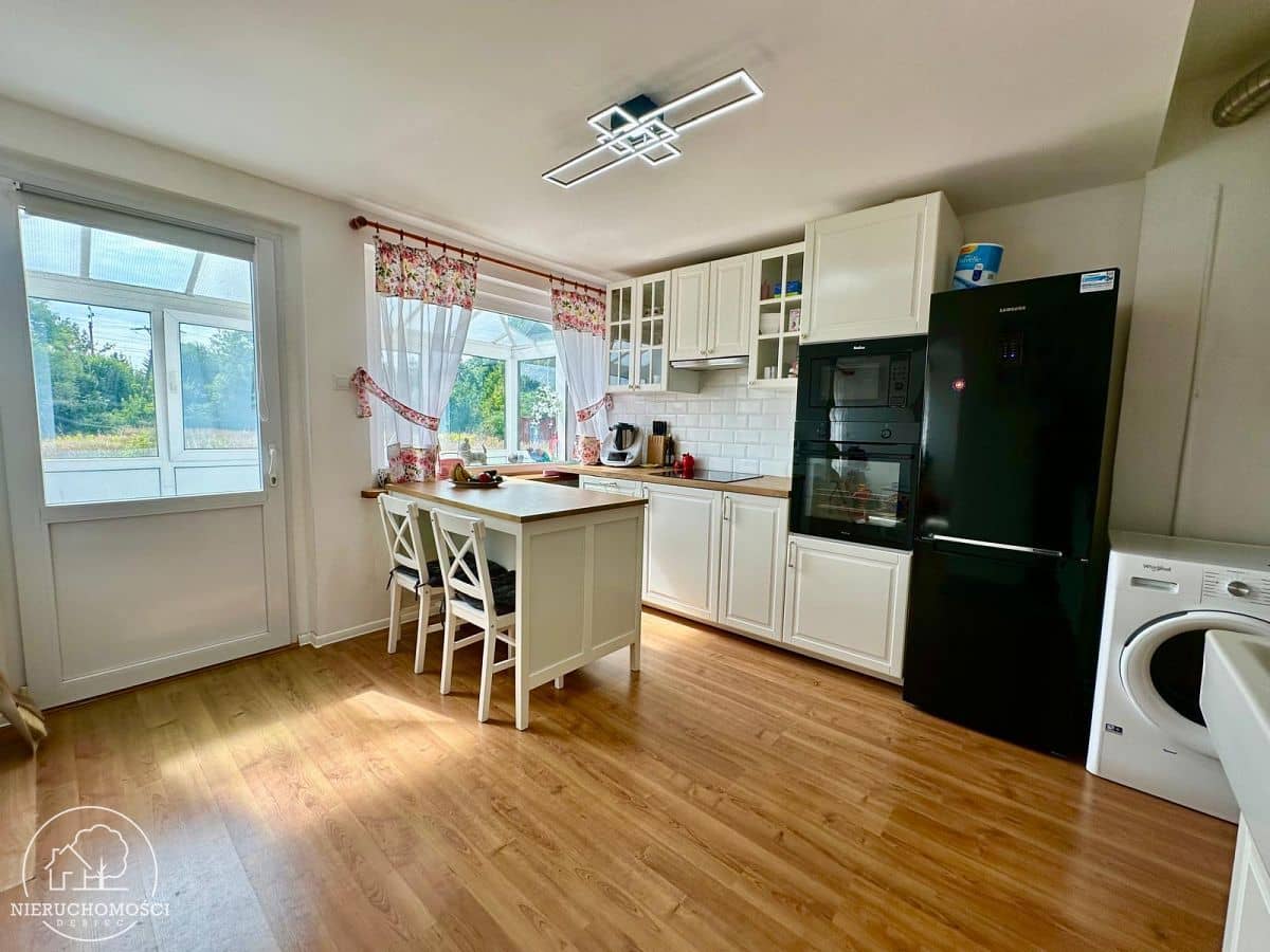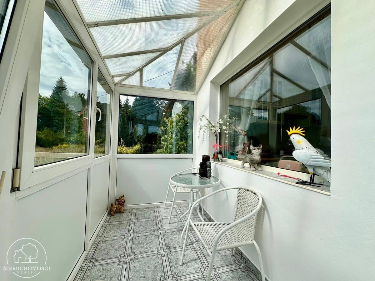 Do mieszkania prowadzą dwa wejścia (jedno niezależne przez werandę, jedno klasyczne przez klatkę schodową).