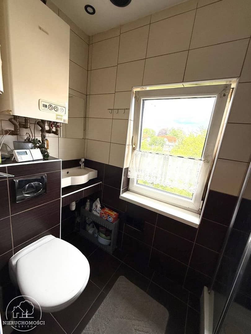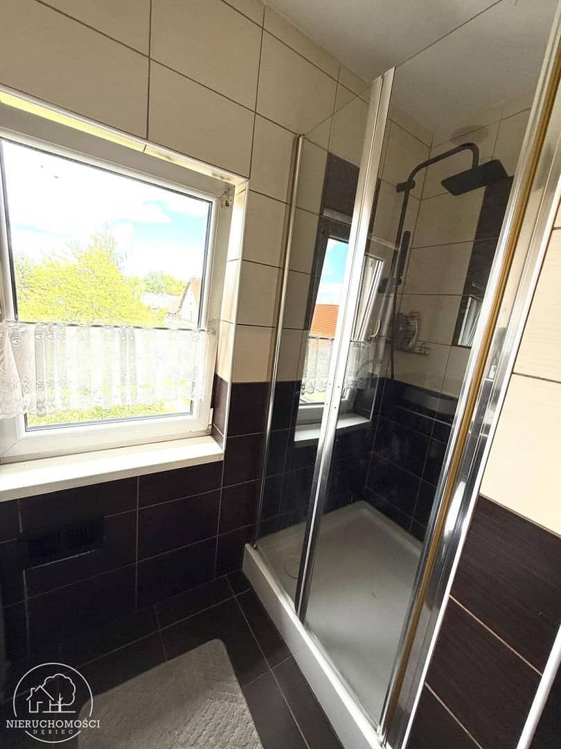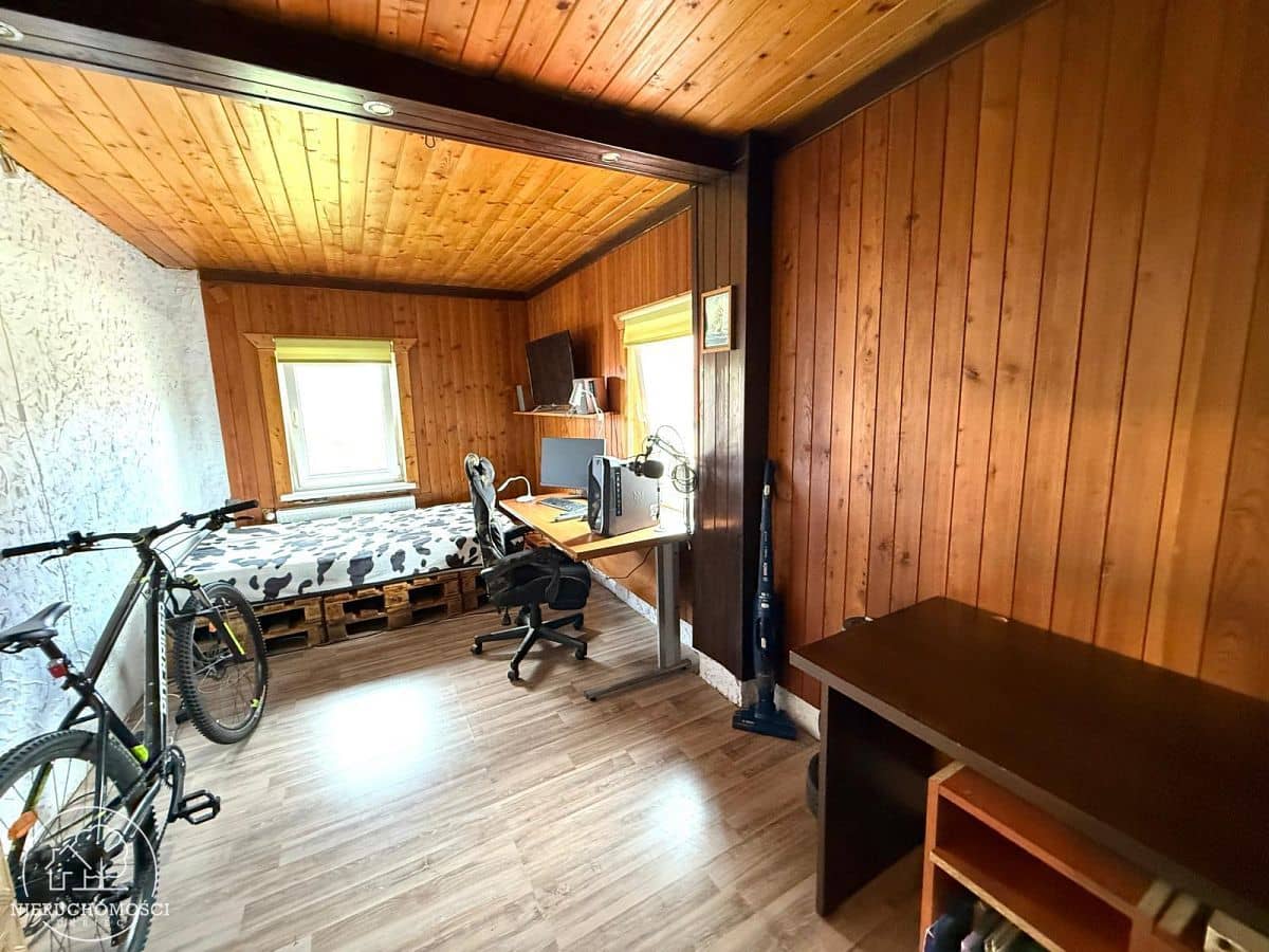 Na podłogach panele, kafle. Okna PCV.