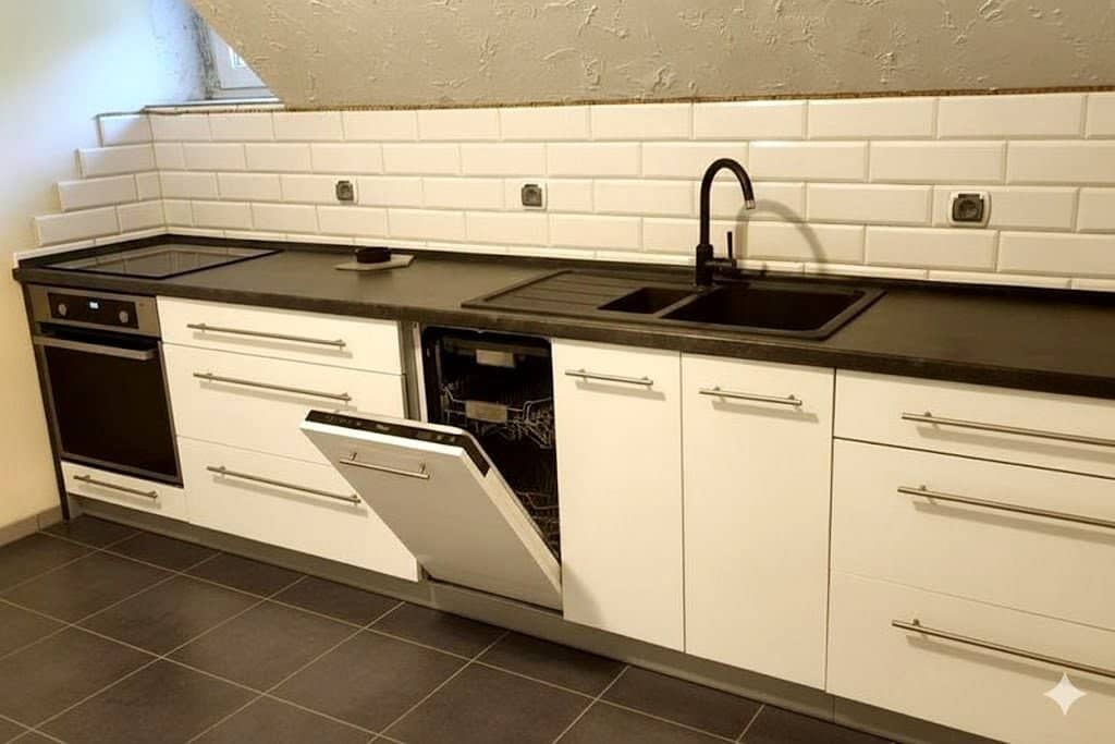 Kuchnia jest nowa i w pełni wyposażona w sprzęt AGD, który wraz z meblami pozostaje w mieszkaniu, co czyni ofertę gotową do wprowadzenia bez dodatkowych nakładów.