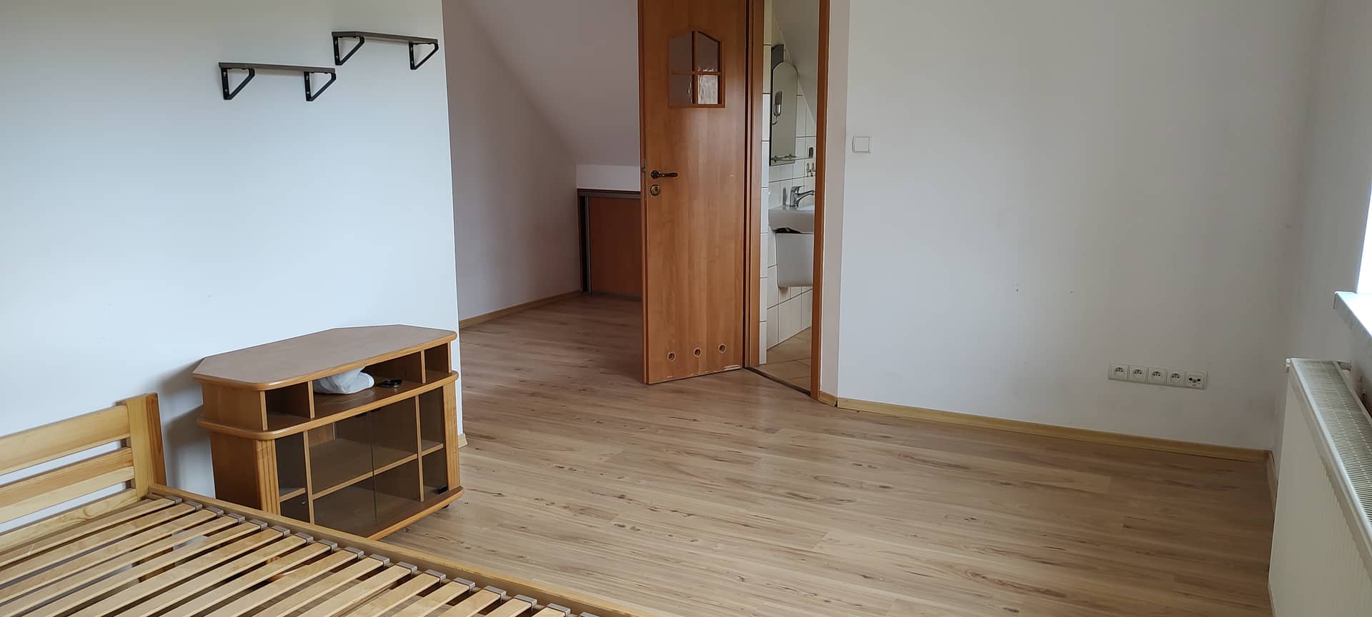 Dodatkowym atutem jest osobne wejście do pokoju na parterze, co stwarza możliwość wykorzystania tej części jako np. niezależnego studia, pokoju gościnnego czy przestrzeni pod wynajem.