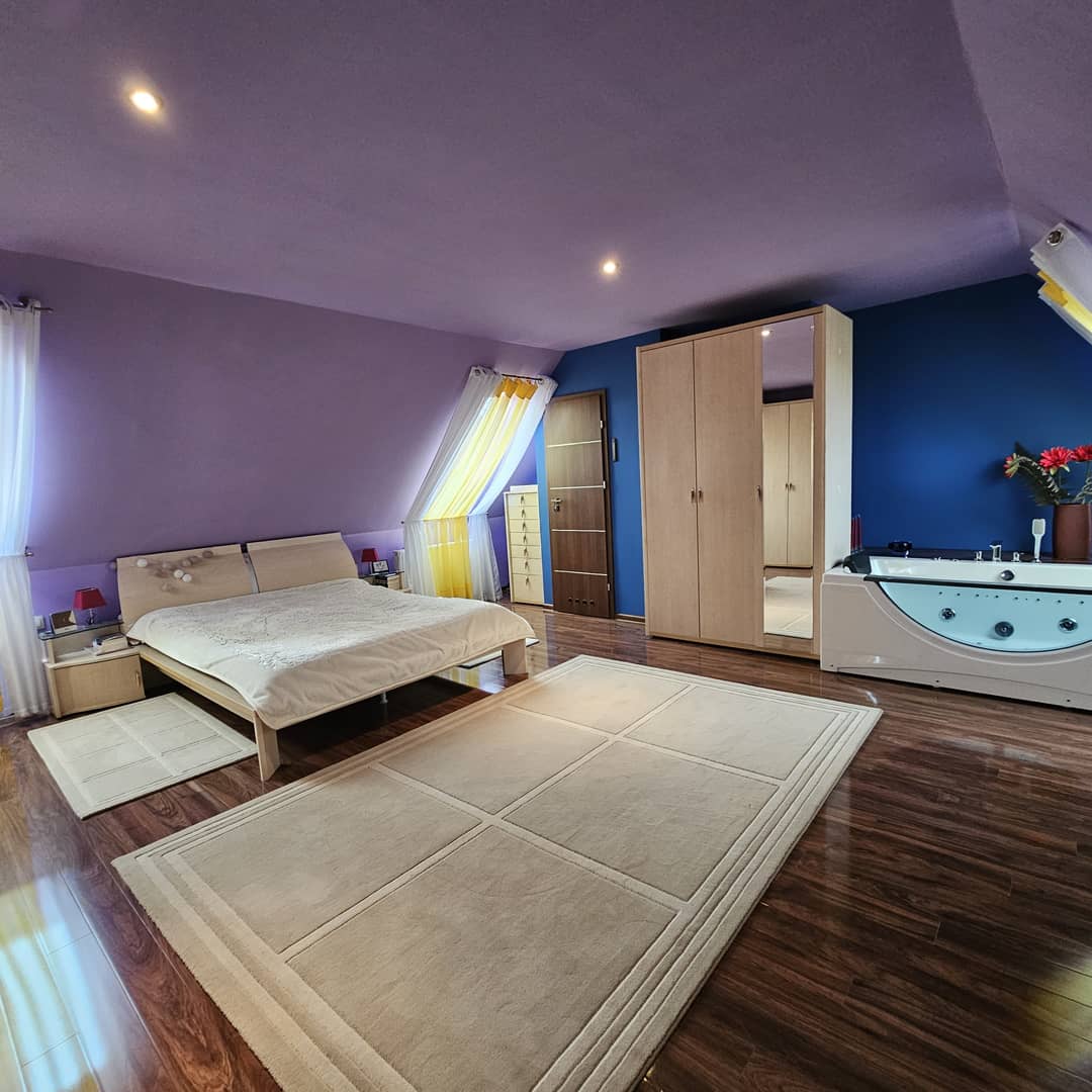 • duża otwarta przestrzeń z wanną z hydromasażem ( można tu wyodrębnić 2 pokoje )