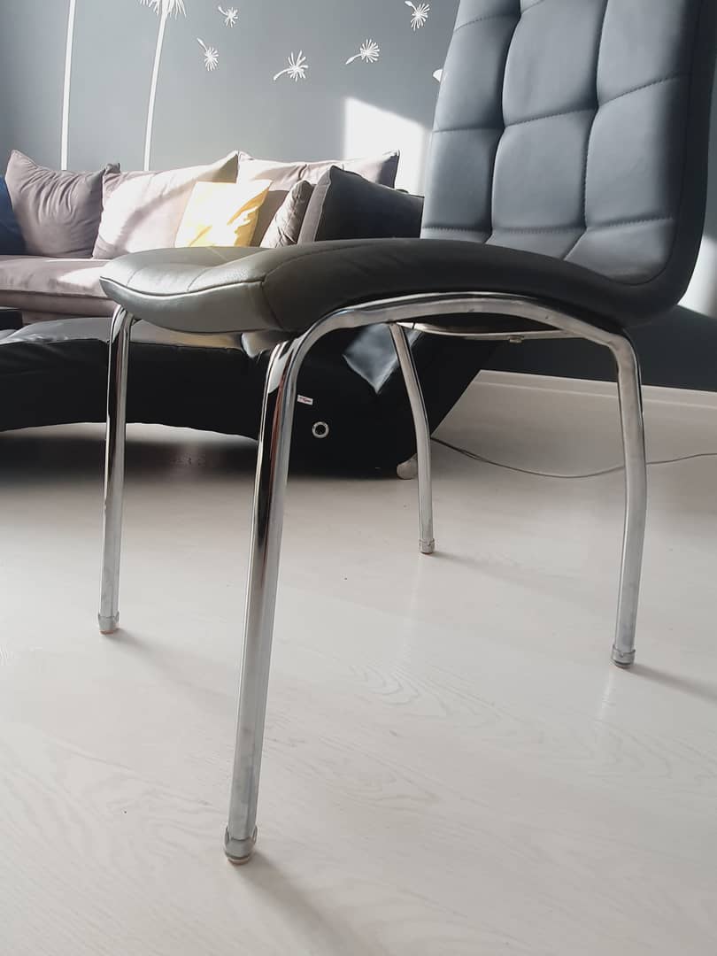 Na sprzedaż komplet 3 skórzanych krzeseł kuchennych w kolorze szarym.