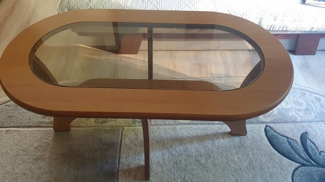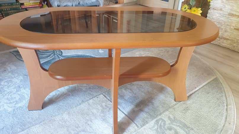 Sprzedam ławę owalną z szybą mało używana nie jest zniszczona w bardzo dobrym stanie cena 199 zł