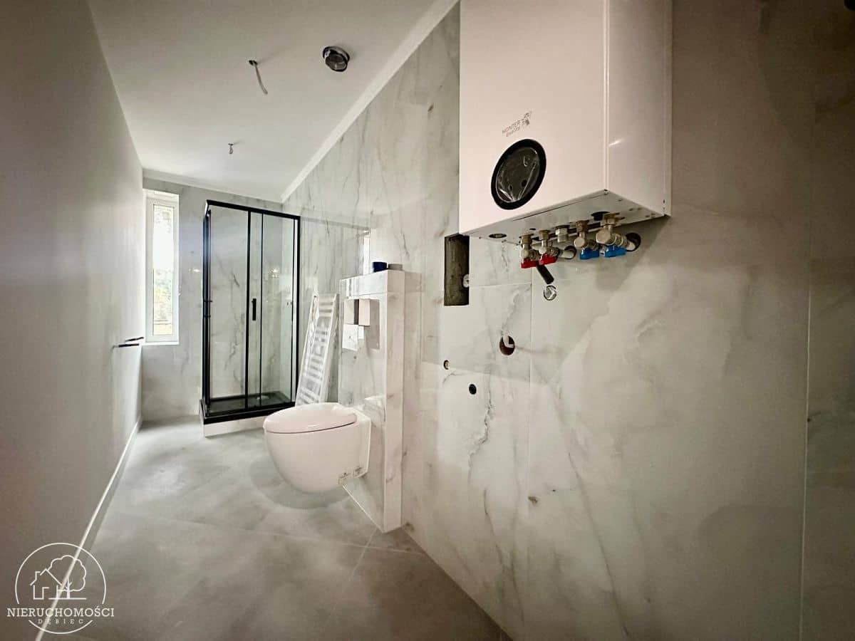 Do wyposażenia przez nabywcę pozostają pokoje oraz kuchnia. Ogrzewanie za pomocą nowego pieca gazowego dwufunkcyjnego.