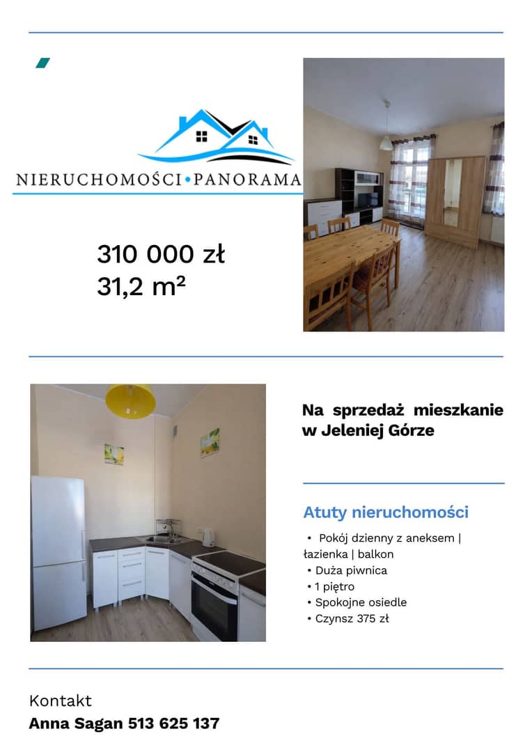 Biuro nieruchomości Panorama ma przyjemność zaprezentować mieszkanie na sprzedaż o powierzchni 31,2m².