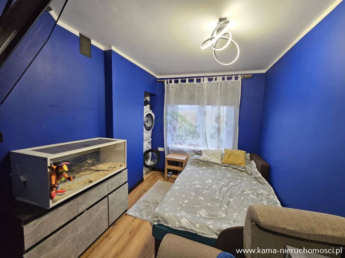 Aktualnie miejsce na pralkę usytuowane we wnęce w sypialni, jednak jest również podłączenie w łazience.
