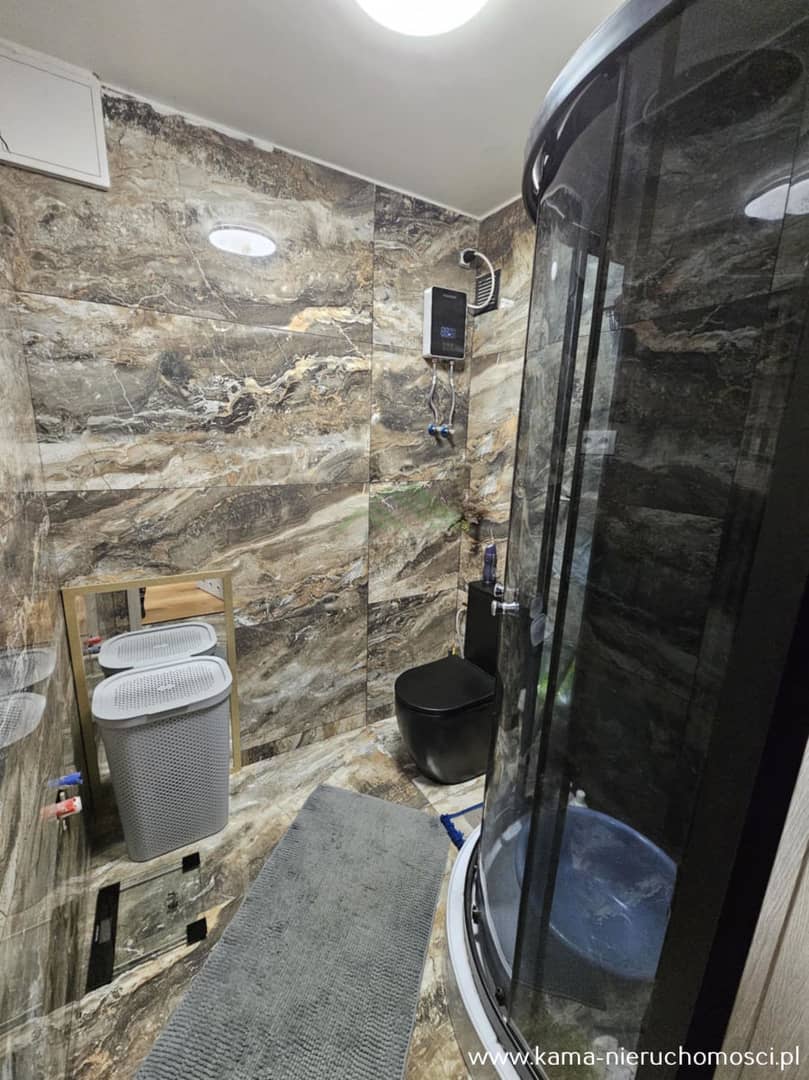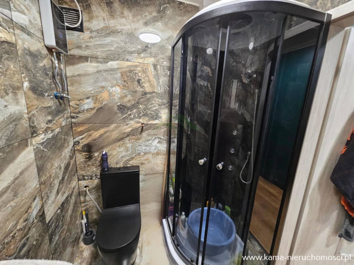 - łazienka z WC oraz kabiną prysznicową