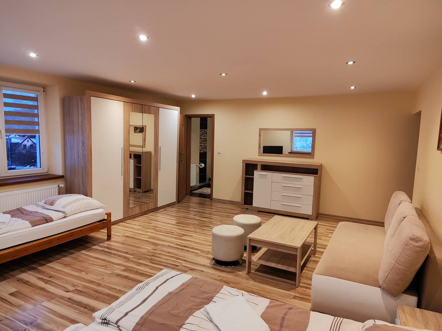 Wynajmę pokoje z łazienkami oraz kuchnią w pełni wyposażone. Idealne dla pracowników lub całościowo jako jedno mieszkanie.Cena dla pracowników 1200zł. za 1 osobę miesiąc wraz z mediami