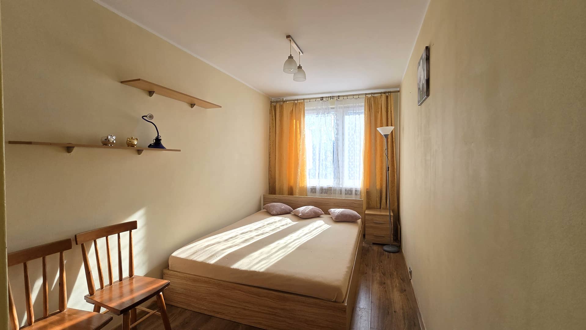 Mieszkanie dwustronne, umeblowane i wyposażone, składa się z salonu, sypialni, kuchni, łazienki z prysznicem i z WC oraz przedsionka. Do dyspozycji Najemcy piwnica.