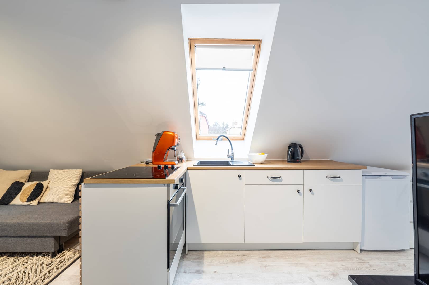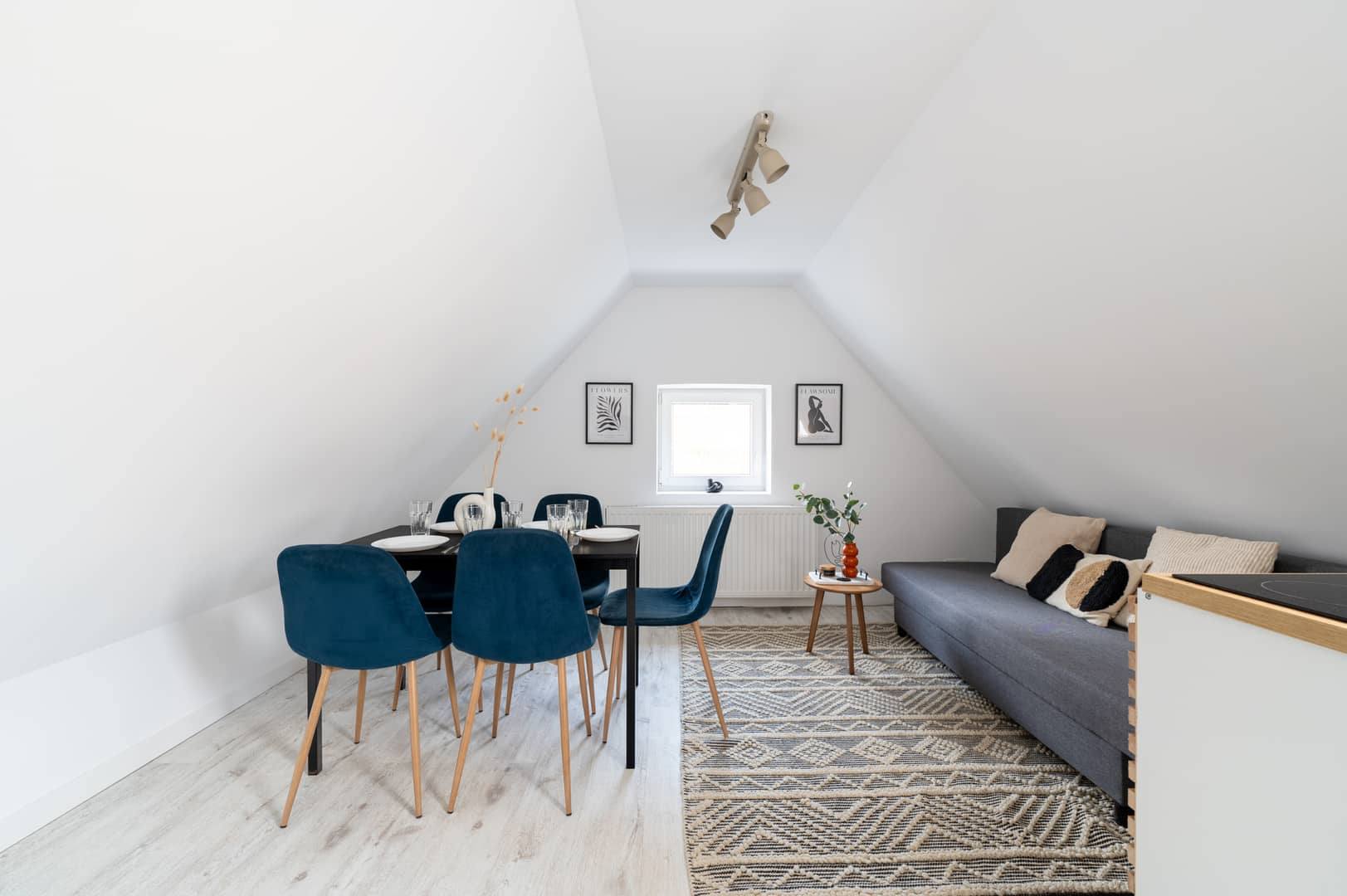 ️ Układ: salon z aneksem kuchennym, łazienka z wanną, sypialnia + mała garderoba