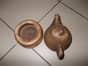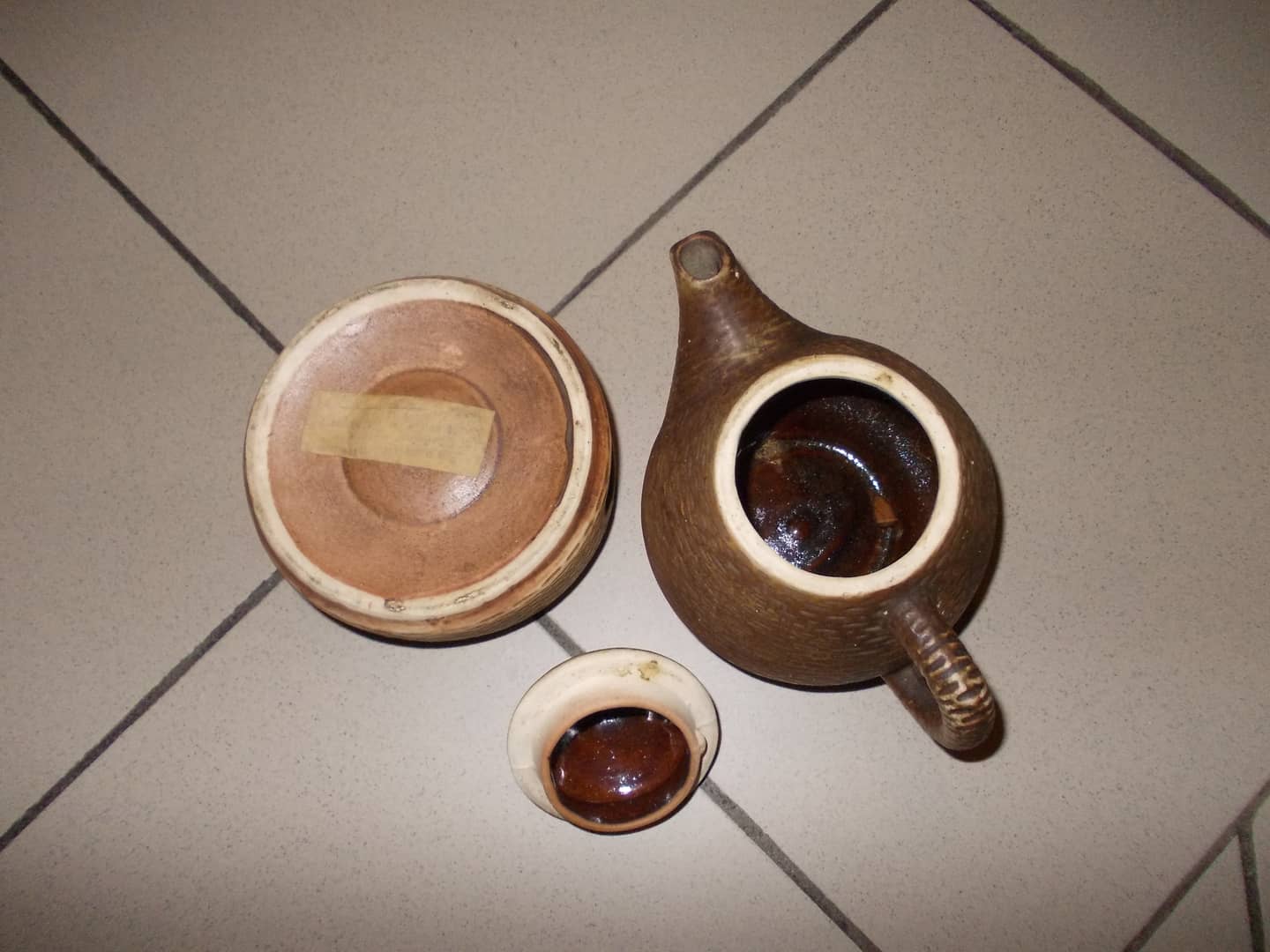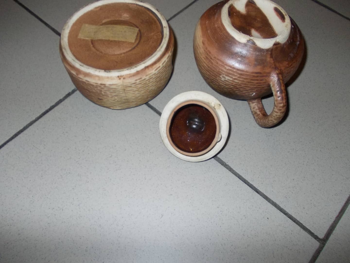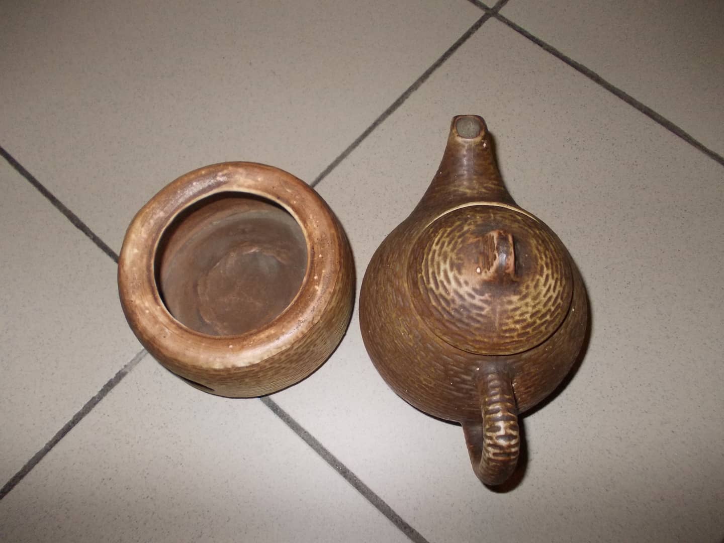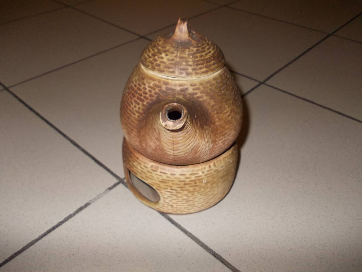 Ceramiczny imbryk z podgrzewaczem. Posiada charakterystyczny tłoczony wzór przypominający cegiełki. Niewielkie ślady od przechowywania. 30 zł.