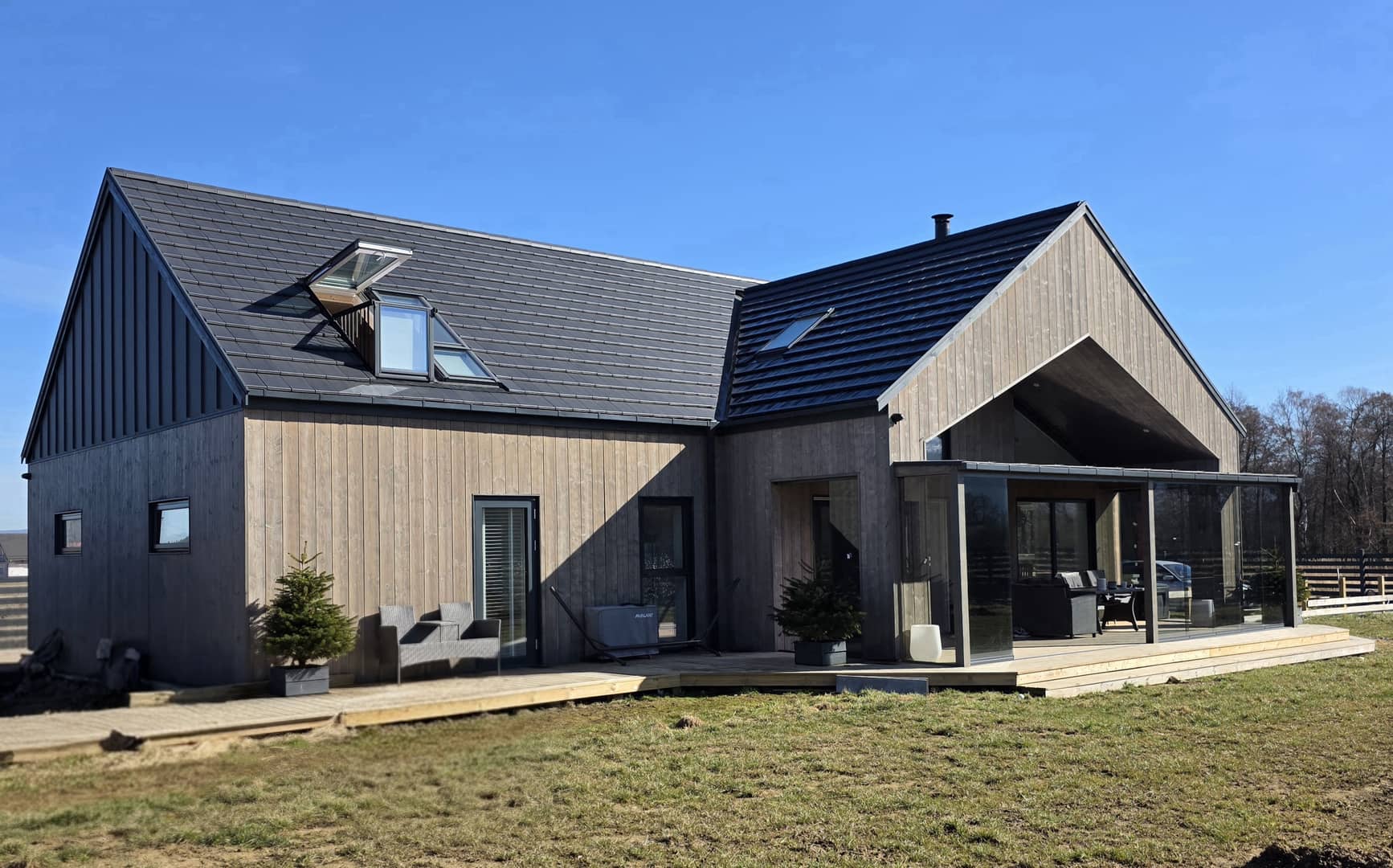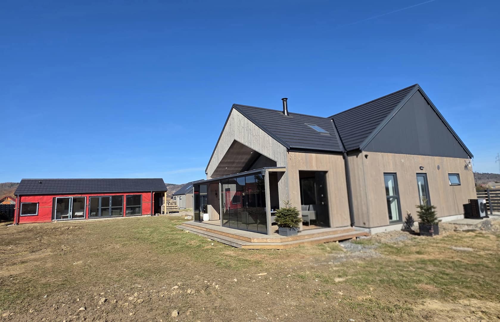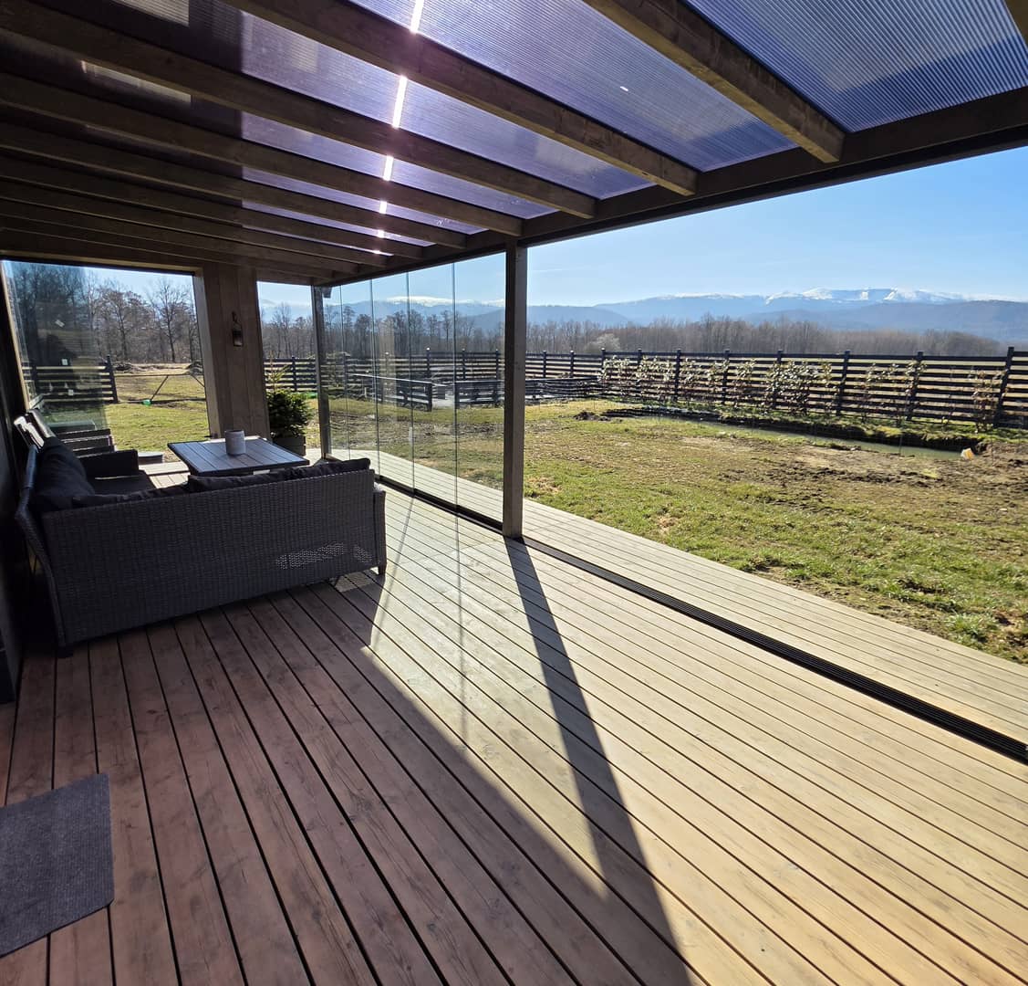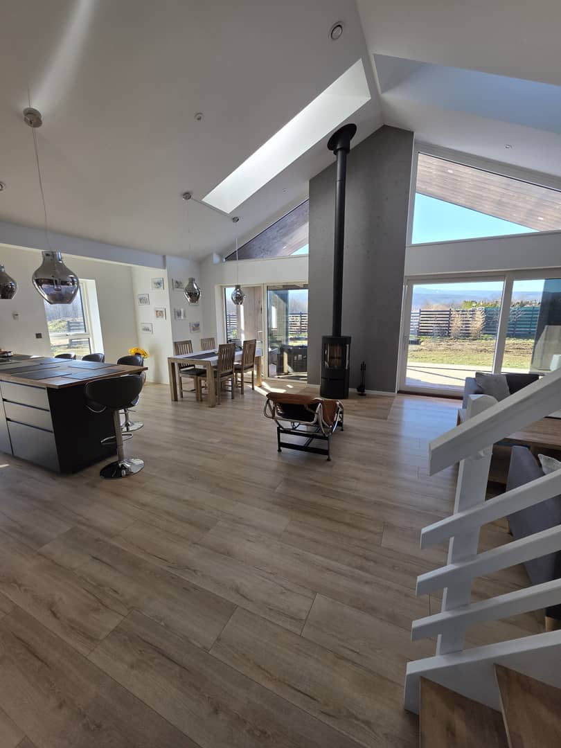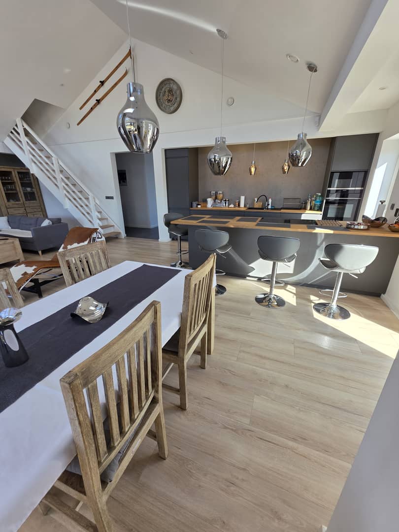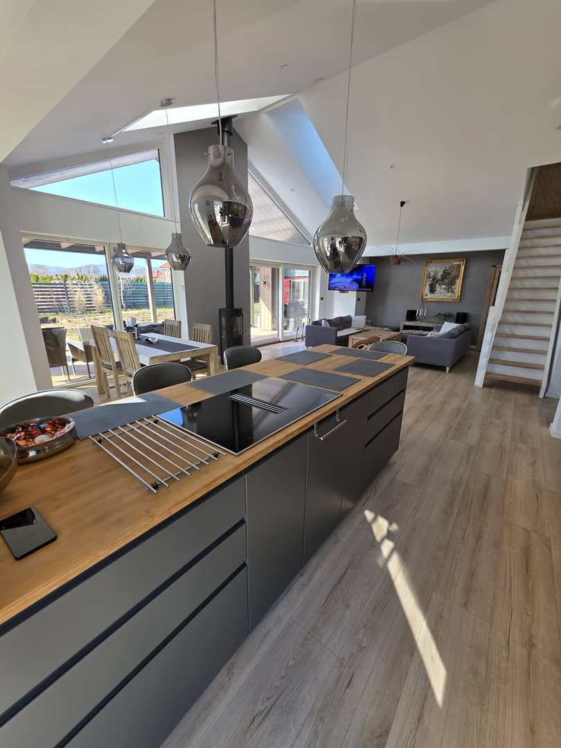 Pięknie położona posiadłość z bajecznymi widokami na pasmo Karkonoszy w gminie Stara Kamienica. Na działce o powierzchni 5080 m2, posadowiony jest dom parterowy wraz z domkiem spa i basenem. Budowany w 2024 roku, w stylu skandynawskim w konstrukcji drewnianej, szkieletowej ocieplony wełną mineralną 32 cm, elewacja pokryta deską świerkową impregnowana i olejowana. W fundamencie ocieplenie styropianem 30 cm. Dach pokryty dachówką płaską, ceramiczną z ociepleniem wełną 40 cm. Okna drewniane, 3 szybowe z nakładką aluminiową. Podłogi wyłożone panelami, w części płytkami. Ogrzewanie podłogowe, pompa ciepła plus kominek w salonie z zamkniętą komorą spalania. Media to prąd, woda z własnej studni głebinowej i oczyszczalnia ścieków. Powierzchnia użytkowa domu wynosi 142,91 m2, na którą składa się przedpokój, łazienka z kabiną prysznicową, pom. gospodarcze ( kotłownia, pralnia) trzy pokoje w tym sypialnia z własną łazienką, wyposażoną w wannę, garderobę i wyjściem na taras oraz przestronny, bardzo słoneczny, przeszklony salon połączony z jadalnią i kuchnią umeblowaną i wyposażoną w wysokiej jakości, energooszczedny sprzęt AGD. Z tąd również prowadzą schody na piętro, gdzie zaadoptowano dodatkowy pokoj na poddaszu z wysuwanym balkonem i cudnymi widokami. Z salonu wyjscie na drewniany, zadaszony, oszklony taras, rozsuwany na cieplejsze dni, z którego można podziwiać okoliczną przyrodę oraz całą panoramę pobliskich gór, ciesząc się ciszą, naturą i spokojem pobliskiej okolicy. Na posesji posadowiony również domek spa, w którym znajduje się basen o pojemnosci 8 tysięcy litrów, z jacuzzi oraz różnego rodzaju systemami relaksacyjnymi, sauna sucha, sauna parowa, grota solna z tężniami oraz miejsce do wypoczynku z leżakami, z którego również możemy podziwiać widoki, otwierając, bądź zamykając taras. ( do wykończenia pozostała elewacja i taras który finalnie łączył się będzie z tarasem domowym). Dodatkowo wiata garażowa na dwa samochody, z częścią wydzieloną na skład drewna oraz wolnostojący garaż około 50m2, z poddaszem i pomieszczeniem gospodarczym na narzędzia ogrodowe. Wydzielone miejsce do rekreacji na ognisko i grilla z ławeczkami w pobliżu oczka wodnego. Około 2700 m2 terenu ogrodzone płotem drewnianym, oświetlony, z bramą elektryczną na pilota. Teren utwardzony, cześć do zagospodarowania według własnych potrzeb. Za płotem pozostała część działki, która może pozostać jako areał całej posesji, jak również zostać wydzielona ( przygotowany wstępny projekt podziału) do sprzedaży. Teren monitorowany z systemem alarmowym. Dojazd drogą utwardzoną. Całość pieknie wykończona z dbałością o najmniejsze szczegóły i detale, do budowy wykorzystano materiały wysokiej jakości, jak również systemy ekonomiczne, które w połączeniu dają wysokiej klasy dom energooszczedny o bardzo niskich kosztach utrzymania. Atrakcyjna lokalizacja z uwagi na położenie, poza zwartą zabudową, a jednocześnie bliskiej odległości od miasta Jelenia Góra, jak również turystycznej miejscowości Szklarska Poręba, gdzie znajdują się liczne szlaki górskie oraz stoki narciarskie. Miejsce idealne do zamieszkania i wypoczynku. Cena 3500 000 zł do negocjacji. Jedyna taka nieruchomość w okolicy, dostępna tylko w Naszym biurze Nieruchomości Rychlewski serdecznie zapraszam na prezentację.