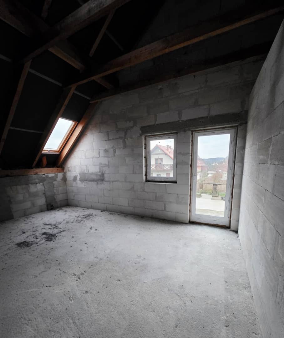 Ładnie położony dom, w stanie surowym zamkniętym, w Mysłakowicach. Usytuowany na osiedlu domków jednorodzinnych, na działce o powierzchni 900 m2. Budowany według projektu BM-55 z superexu, dach pokryty dachówką cementową, podbitka wysunięta na ponad metr od ścian, co spełnia rolę zadaszenia nad balkonami. Wykonana elewacja z ociepleniem, przygotowana do położenia tynku. Powierzchnia całkowita domu wynosi 165 m2 na którą składa się, na partnerze przedpokój, łazienka, salon połączony z kuchnią i jadalnią oraz duży pokój w wersji pierwotnej jako garaż. Ze wszystkich pomieszczeń wyjście na taras. Na piętrze znajduje sie duży hol, 3 pokoje ( w projekcie mogą być 4 ) z balkonami oraz łazienka. Okna pcv, marmurowe parapety zewnętrzne. Do budynku doprowadzony prąd, gaz, woda oraz kanalizacja. Piękny widok na góry. Dojazd drogą utwardzoną, obecnie sąsiedztwo ustala termin położenia asfaltu. Atrakcyjna lokalizacja, bliskość do centrum miejscowości w której znajdują się sklepy, markety, apteka, szkoła, ośrodek zdrowia przystanek MZK oraz PKP. Dom solidnie wybudowany, przestronny, rozkładowy i słoneczny, do własnej aranżacji, dostępny do obejrzenia tylko w Naszym biurze Nieruchomości Rychlewski, w cenie 730 000 zł do negocjacji. Serdecznie zapraszam na prezentację.