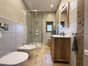 Okna PCV z zewnętrznymi roletami, na podłogach panele i kafle.