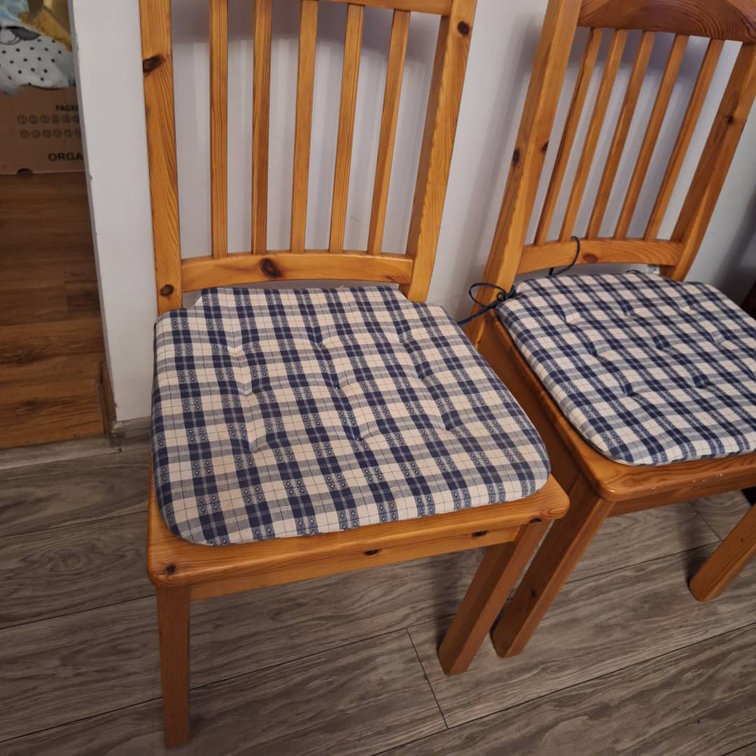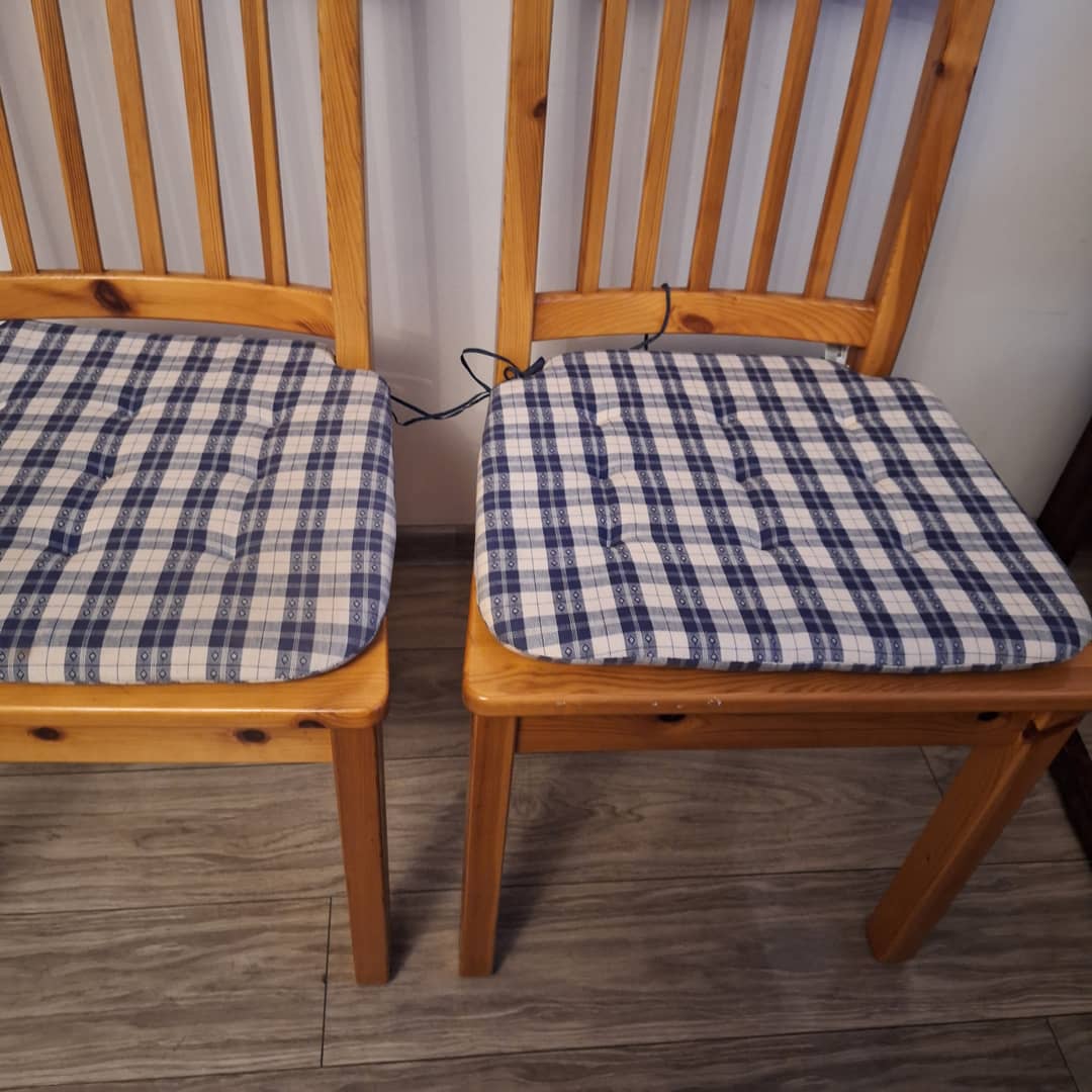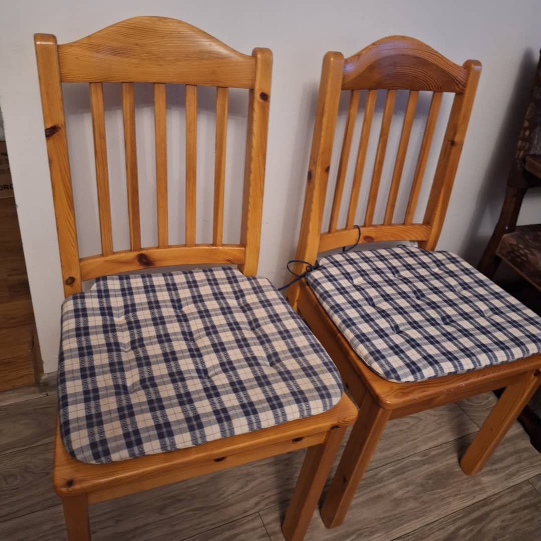 Dwa krzesła drewniane w bardzo dobrym stanie, z poduszkami . Możliwy dowóz lub odbiór osobisty. Cena za dwa 170 zł.
