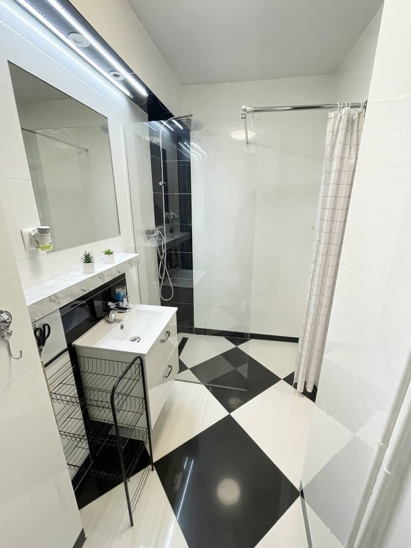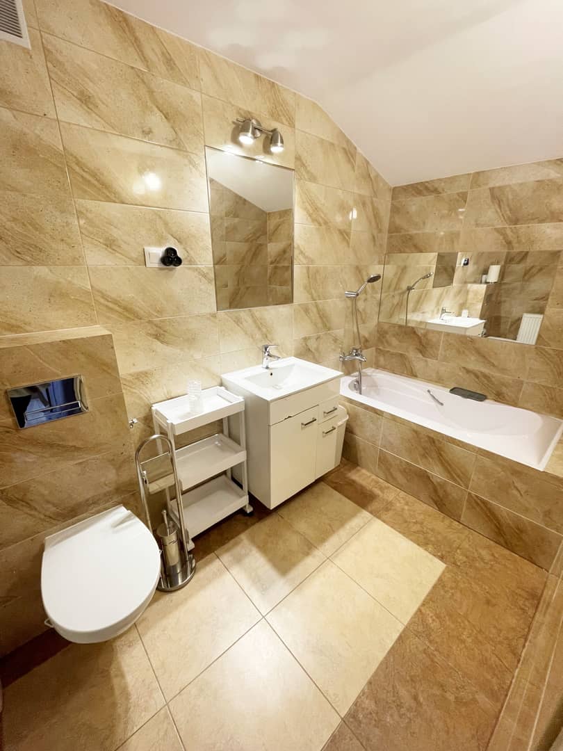 Mieszkanie urządzone w sposób ładny i bardzo funkcjonalny. Dużym atutem są dwie łazienki - po jednej na każdym poziomie.