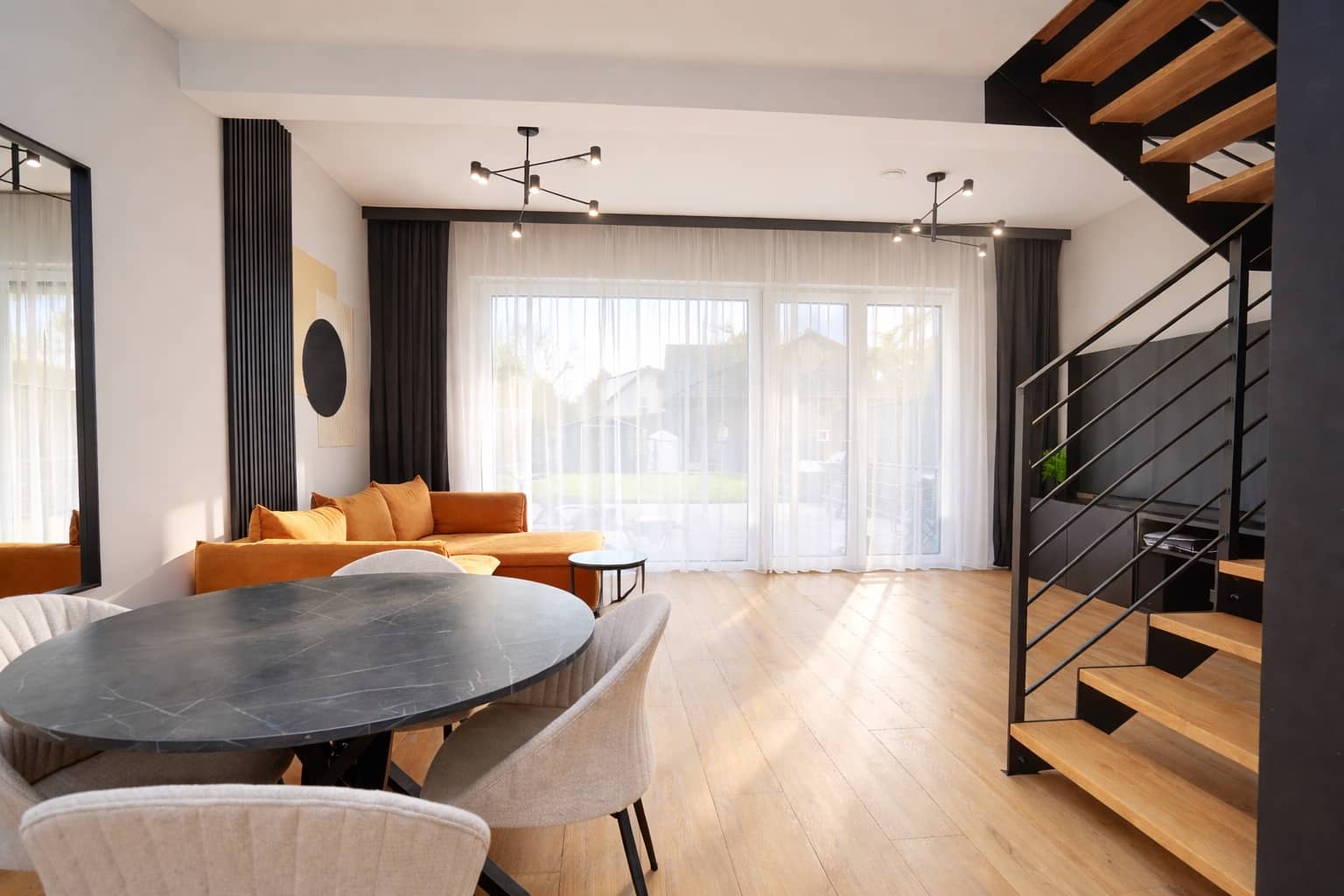dobrze nasłonecznione pomieszczenia oraz ogród i taras