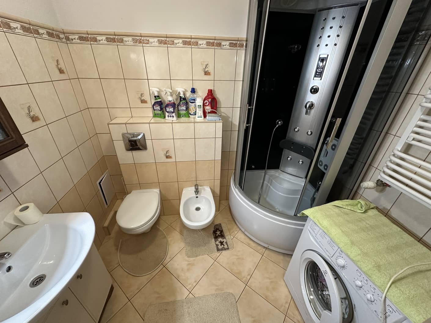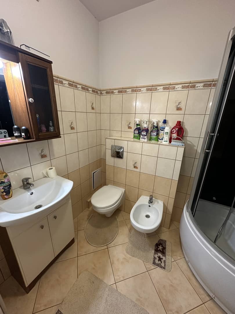 - łazienka z WC, bidetem i kabiną prysznicową