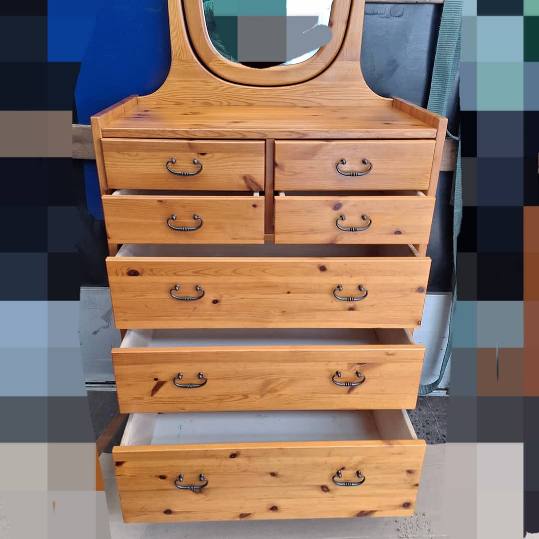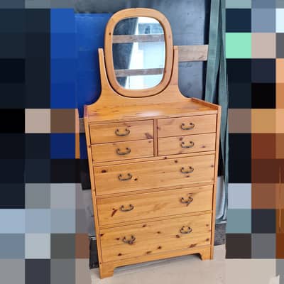 Toaletka z lustrem, drewno sosnowe, wymiary długość 76 cm, głębokość 41,5 cm, wysokość całkowita 159 cm, wysokość do blatu 103 cm. Możliwy transport. Cena 450 zł.