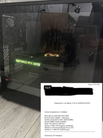 Komputer stacjonarny do montażu filmów/gier– RTX 3070 + i5-13600K