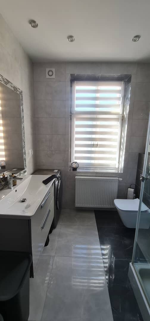 Lokal został wykończony z dbałością o detale przy użyciu materiałów wysokiej jakości, dzięki czemu wnętrze jest estetyczne, funkcjonalne i gotowe do zamieszkania. Na podłogach znajdują się płytki oraz panele, a okna PCV wyposażone są w eleganckie rolety dzień noc, które zapewniają komfort oraz prywatność.