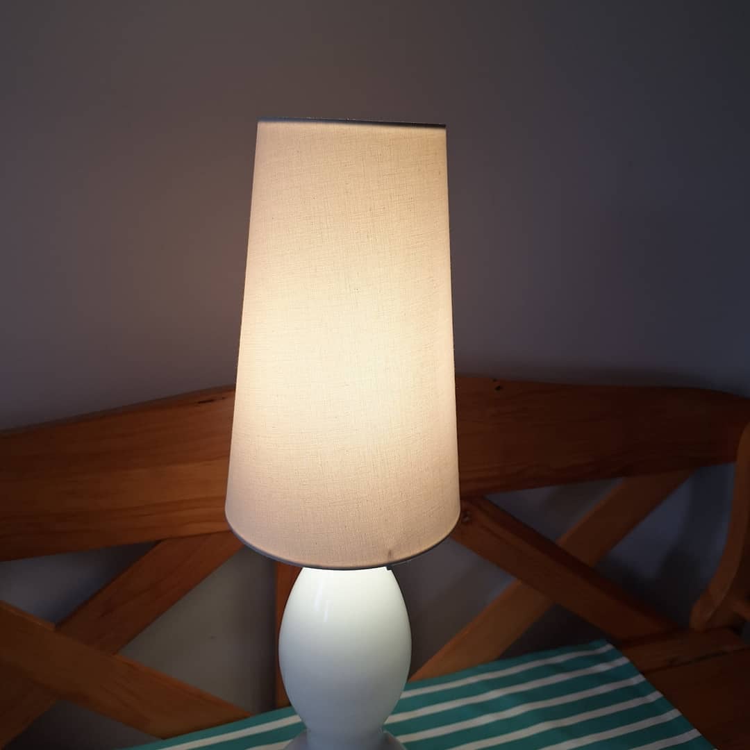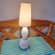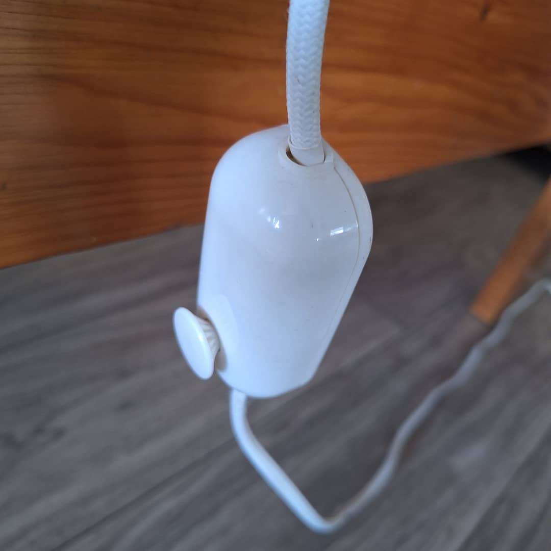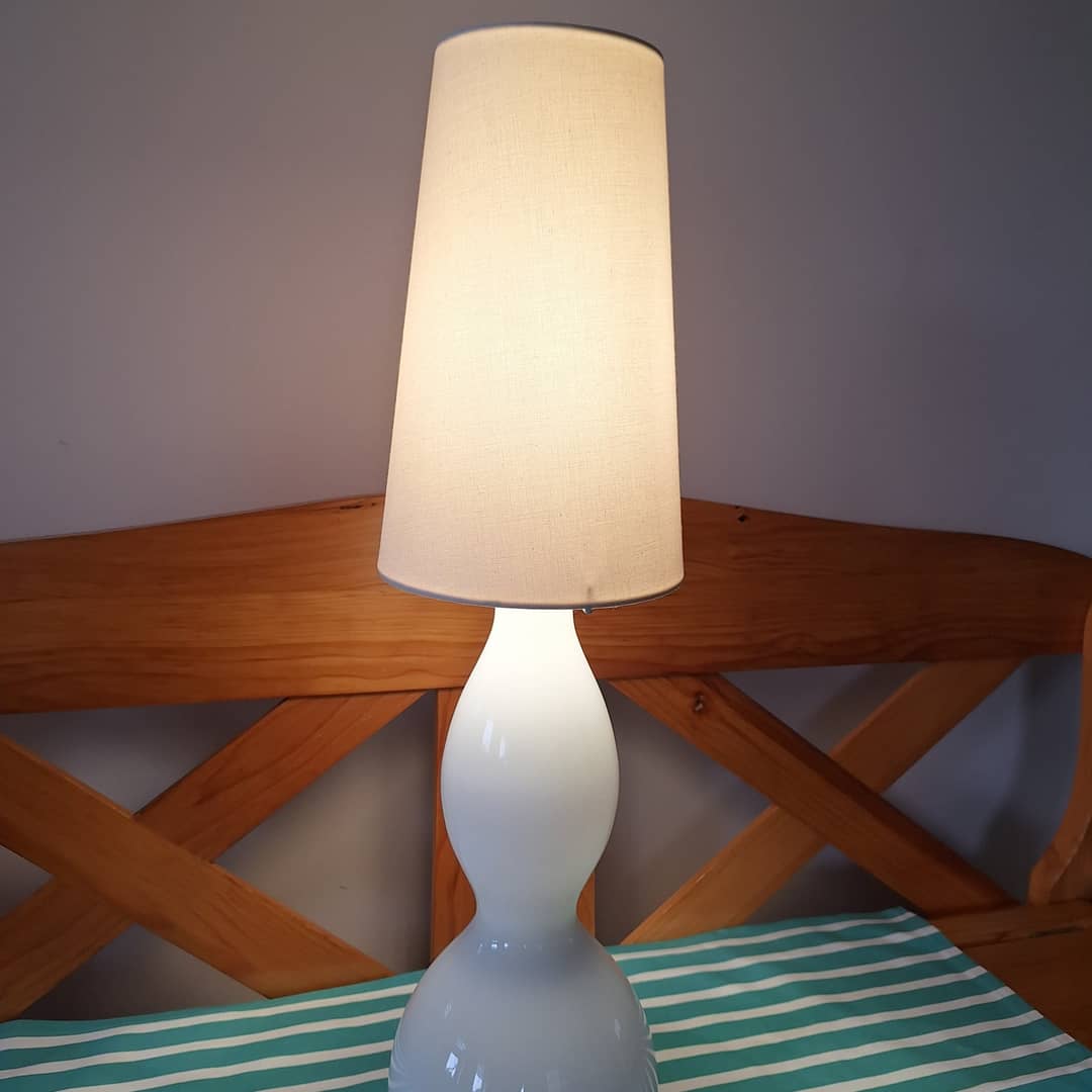 Wysoka szklana lampa stołowa Ljusas Salbo, zaprojektowana przez Anne Nilsson dla Ikea. Abażur materiałowy, wysokość 62 cm, w komplecie nowa żarowka. Długi sznurkowy kabel, włącznik z regulacją światła. Możliwy dowóz lub wysyłka. Cena 120 zł.