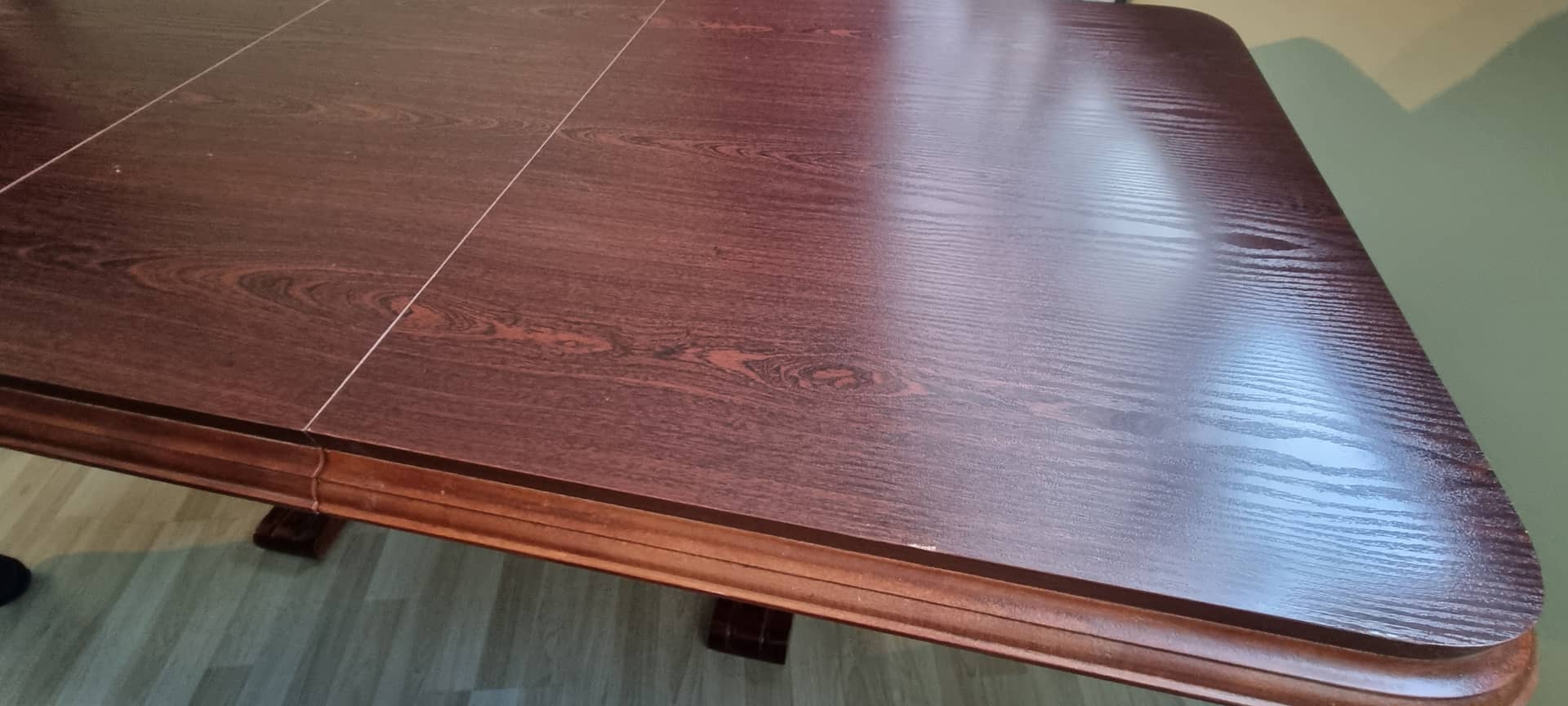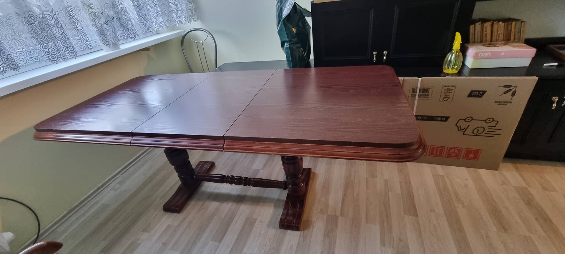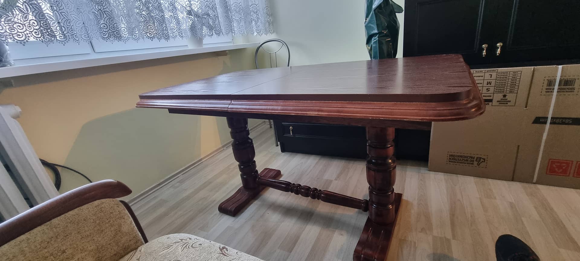 Ława drewniana o wym. wys.od 70cm do 82cm,szer.73cm,dł. 128cm ,rozkładana 170cm.Posiada dwa malutkie odpryski .Odbiór tylko osobisty