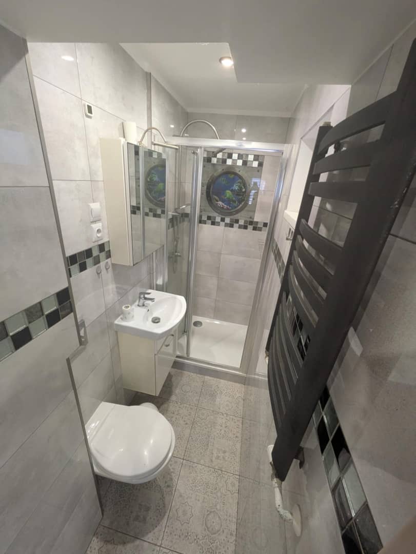 Kuchnia oraz łazienka są w stanie wizualnie bardzo dobrym. W kuchni znajduje się płyta indukcyjna, lodówka, mikrofalówka, pralka.