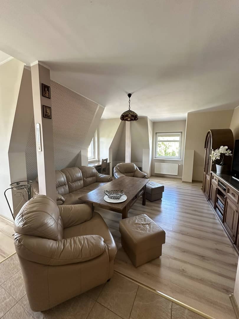 Mieszkanie dwupoziomowe – zajmujące piętro + poddasze w segmencie szeregowym. Do własnej aranżacji. Powierzchnia: 133,5 m² (160 m² po podłodze) Cena: 7 300 zł/m² do negocjacji! Loka