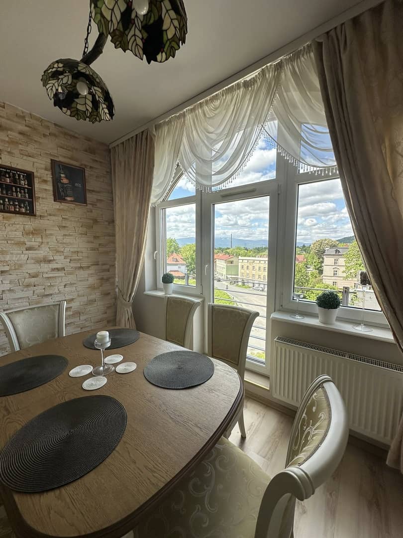 Duże, przestronne mieszkanie 4 pokojowe w Cieplicach, z widokiem na Śnieżkę. Usytuowane na pierwszym piętrze o powierzchni 138,5 m2, składa się z 4 pokoi, kuchni, wc, łazienki oraz przedpokoju