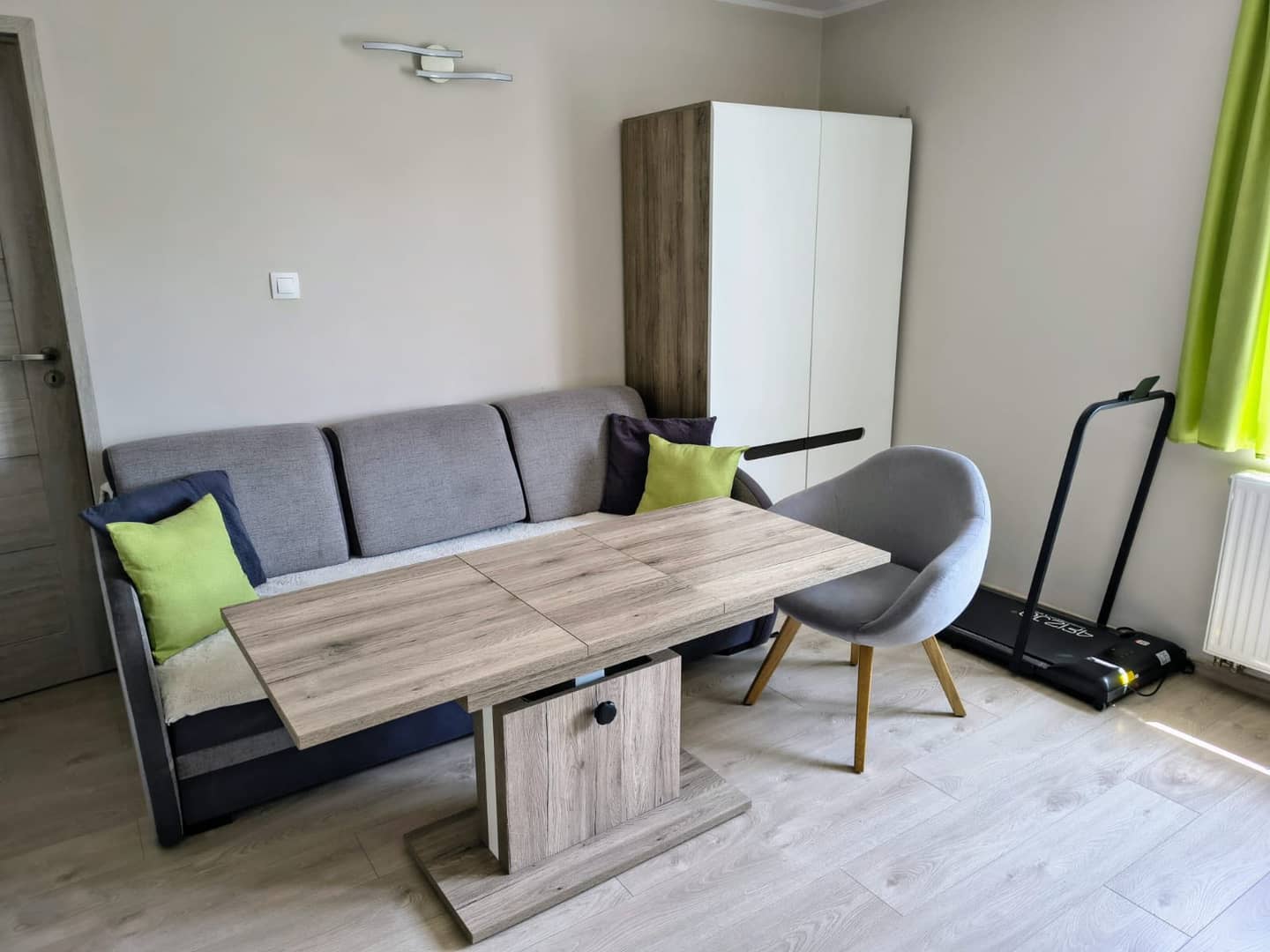 • Wyposażenie: kuchnia w zabudowie (płyta indukcyjna, piekarnik, zmywarka), meble pokojowe