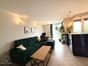 -słonecznego salonu z aneksem kuchennym oraz wyjściem na taras,