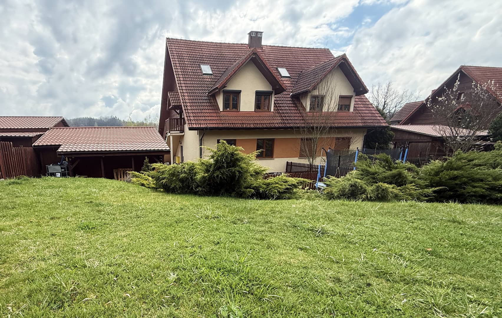 Do mieszkania przynależy ogród z pergolą, wiata garażowa oraz pomieszczenie gospodarcze.