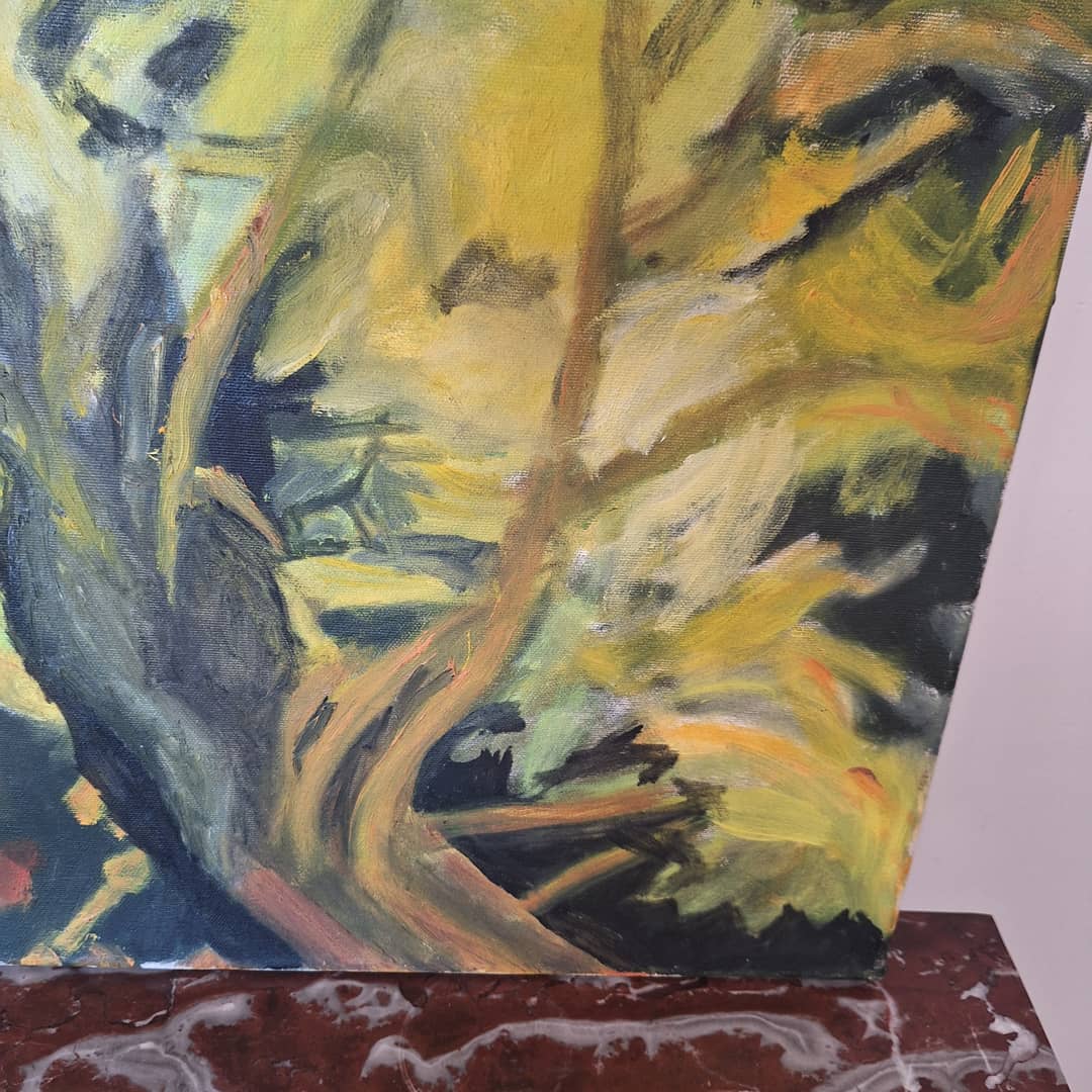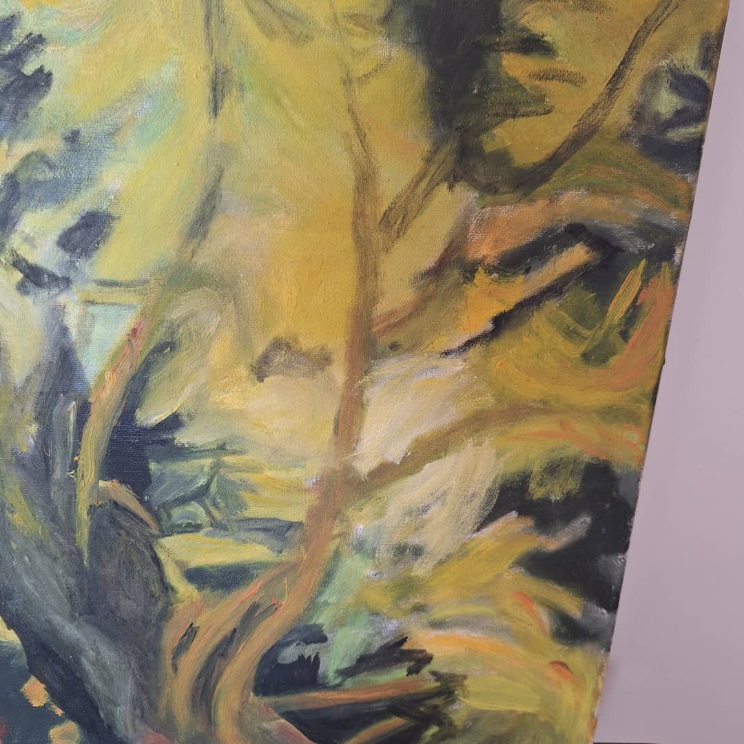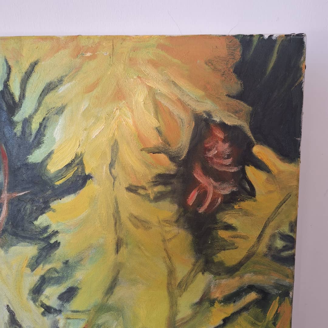 Obraz olejny przedstawiający gałęzie akacji w rozkwicie. Wielkość 50/62 cm, możliwy dowóz lub wysyłka. Cena 60 zł.