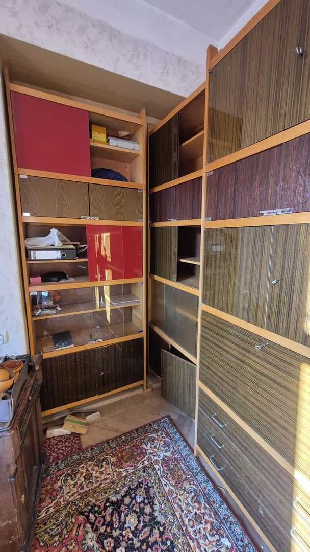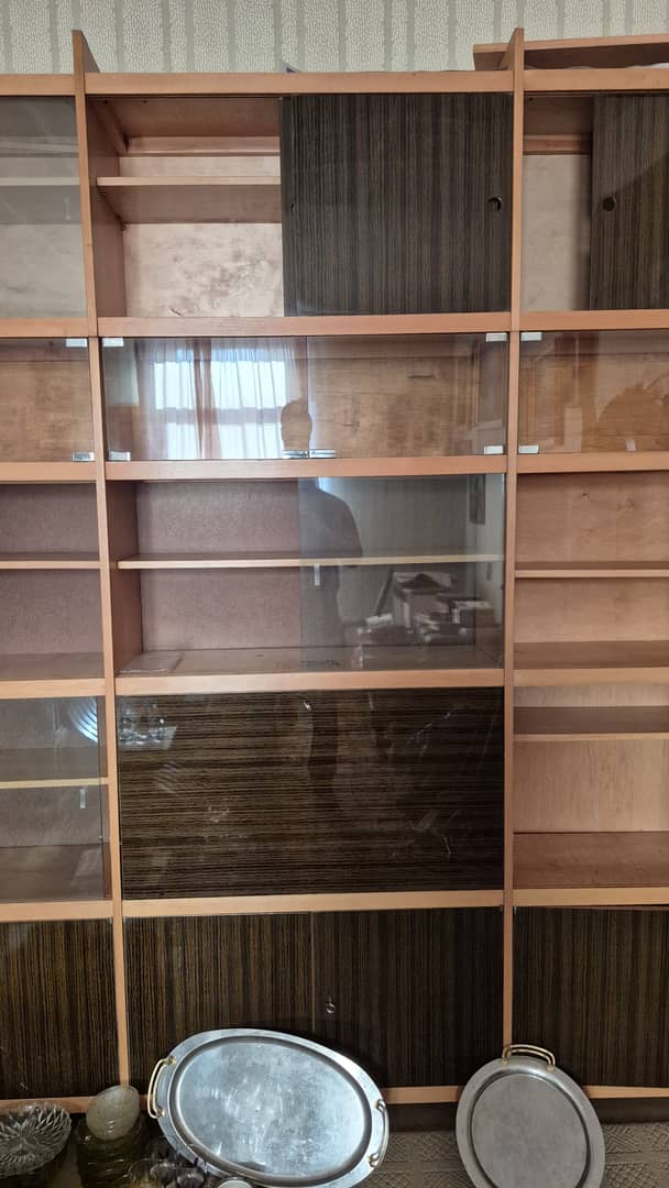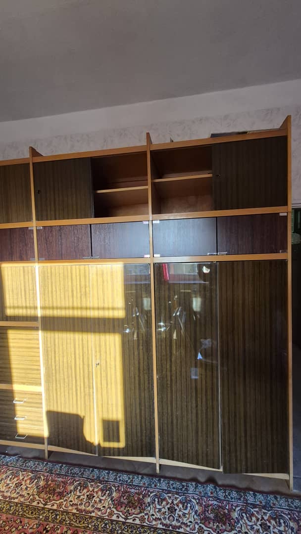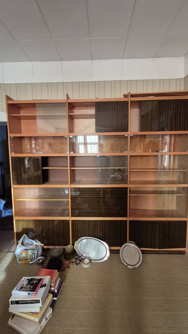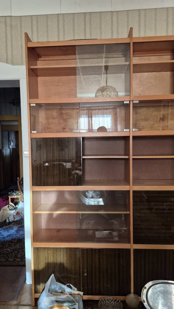 Do oddania za darmo szafy i regały przedstawione na zdjęciach, jak również kanapa z obiciem w kwiaty.
