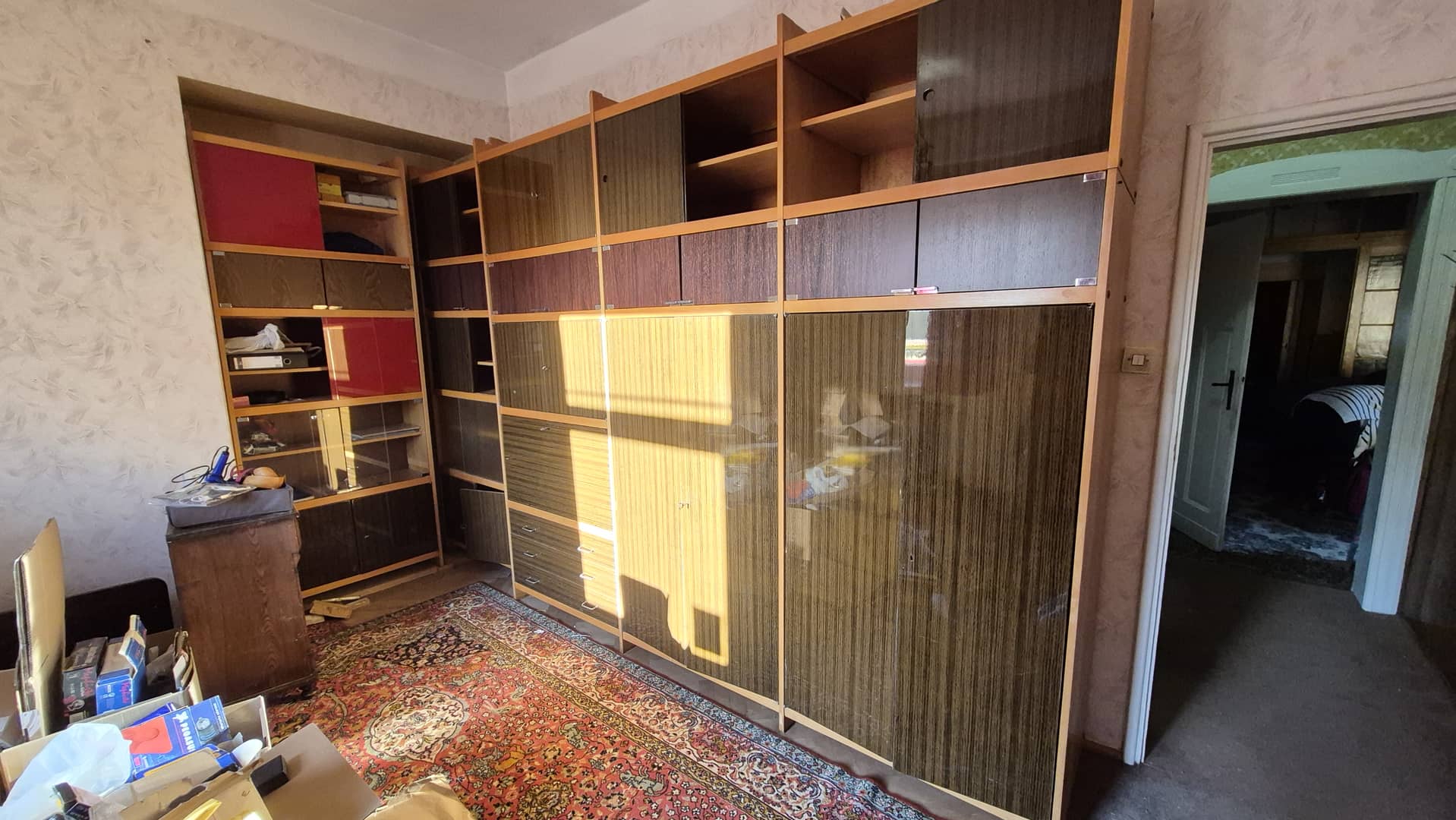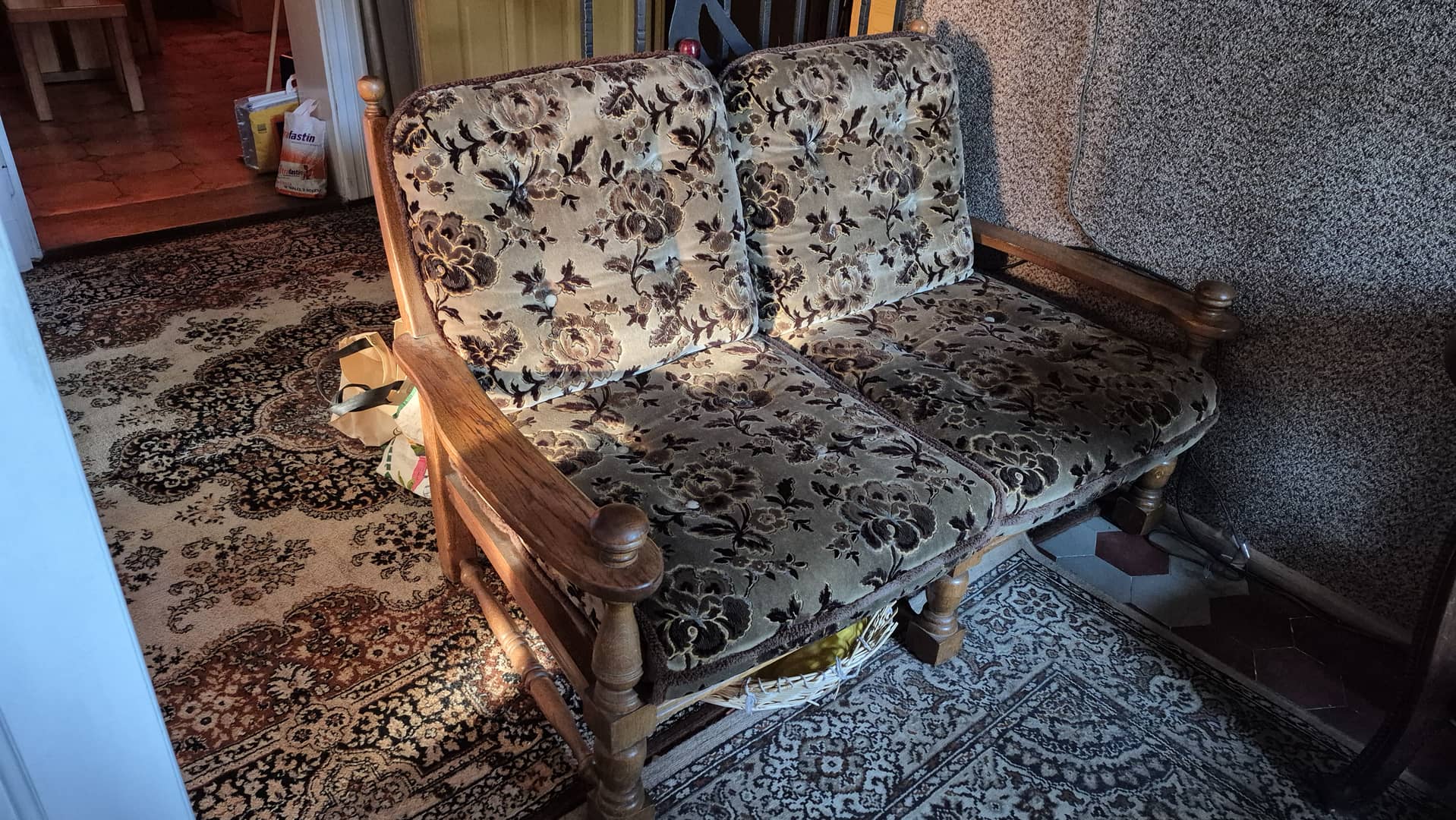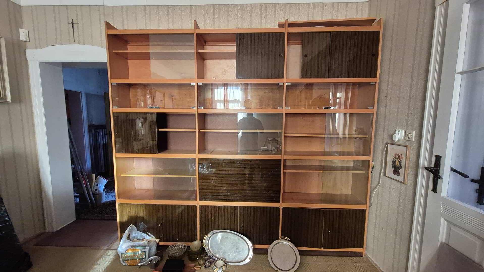 Do oddania za darmo szafy i regały przedstawione na zdjęciach, jak również kanapa z obiciem w kwiaty.
